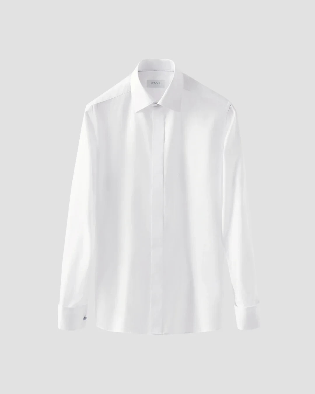как выглядит Eton French Cuff White Signature Twill Tuxedo Shirt 39 15.5 Slim Fit фото