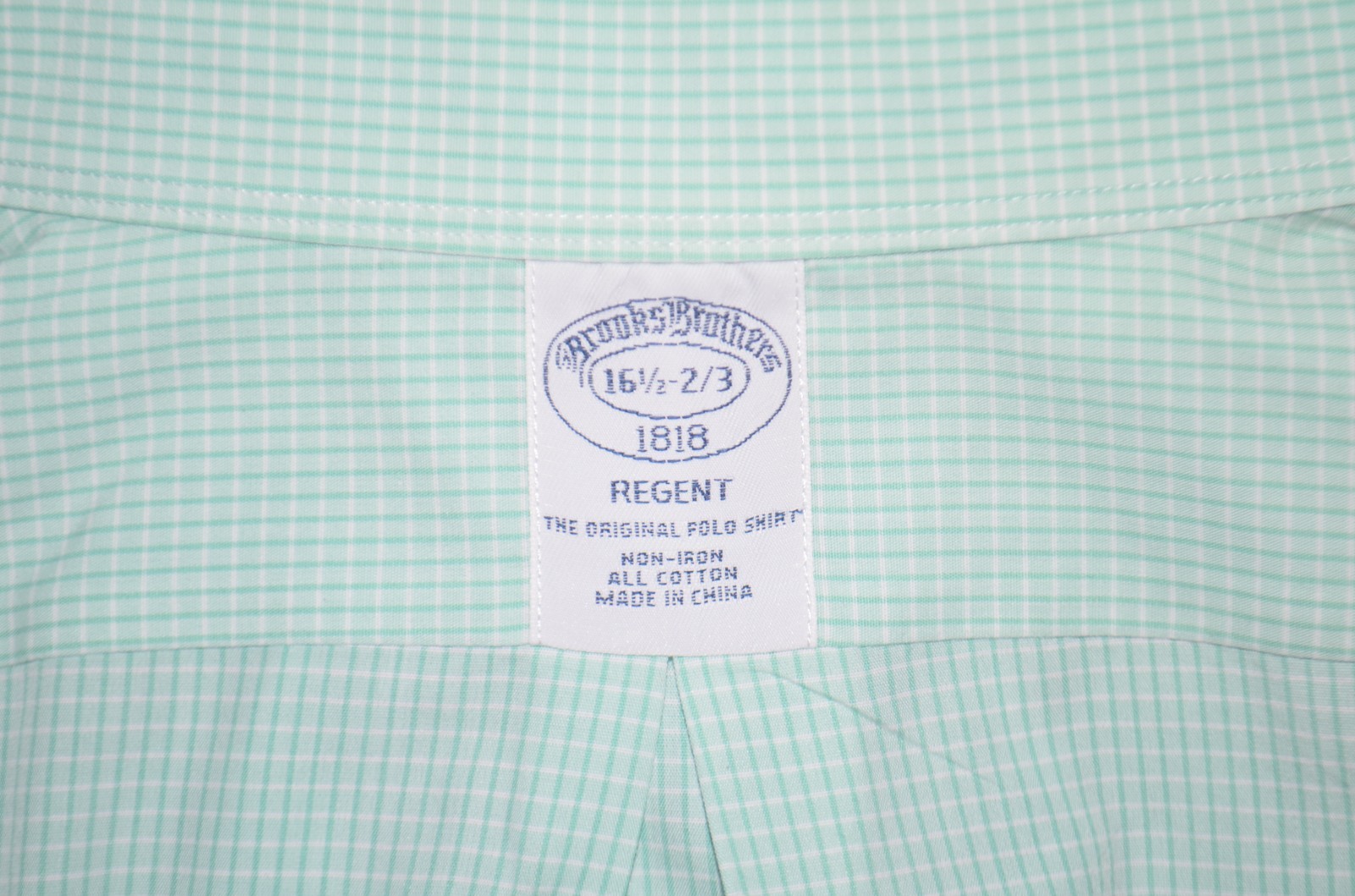 как выглядит BROOKS BROTHERS Regent Non Iron Mint Green Check Cotton Dress Shirt 16.5 32/33 фото