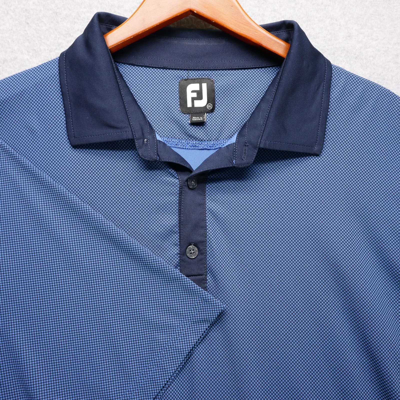 как выглядит FootJoy Polo Shirt Mens 2XL Blue Check Stretch Golf Performance Lightweight Dad фото