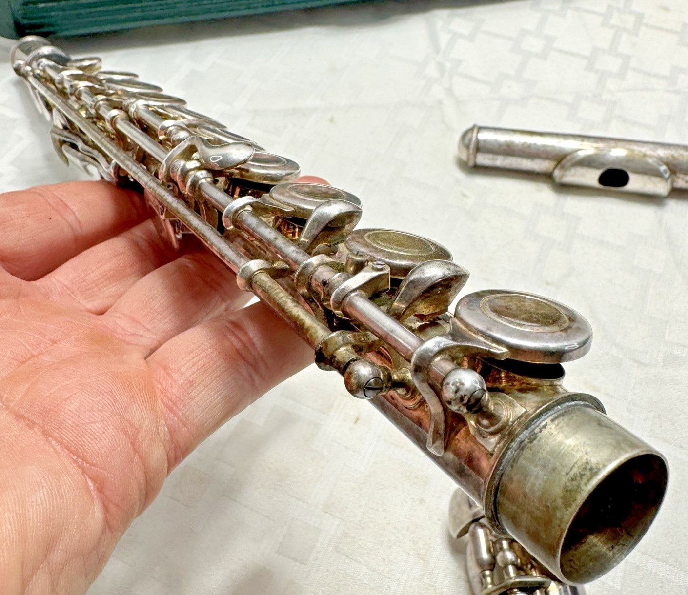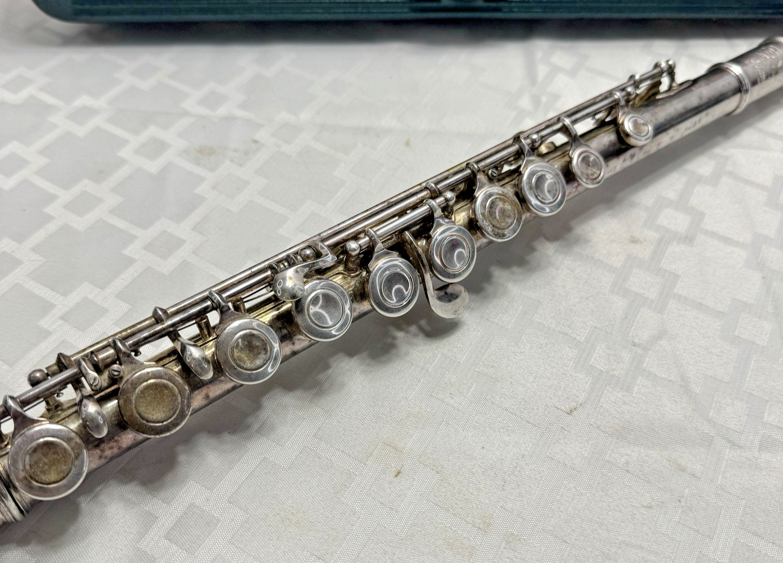 Vintage Bundy Flute Made by Selmer Nickel Silver Green Hard Case Serial 144554