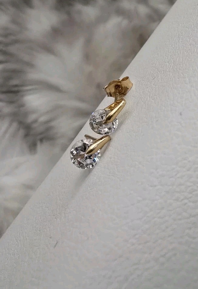 14k Yellow gold Round cz stone stud Small Earrings Adult Or Child
