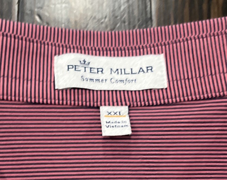 Peter Millar Summer Comfort Polo Shirt Men s 2XL Pink Blue Polyester
