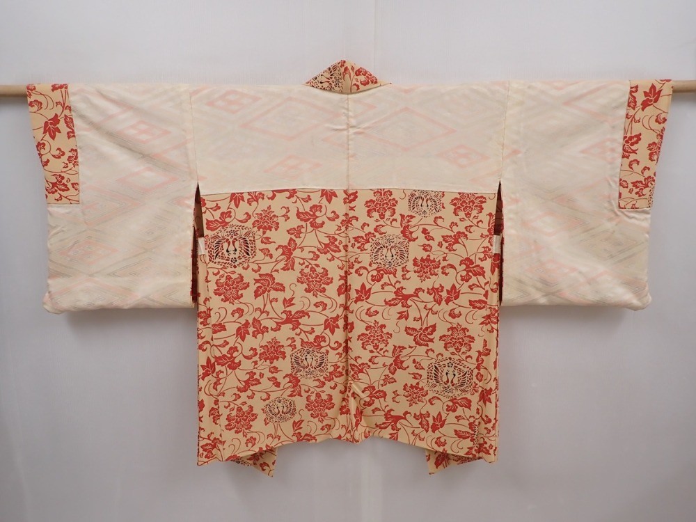 • 6225T05z610 Vintage Japanese Kimono Silk HAORI Bird Cream-Orange