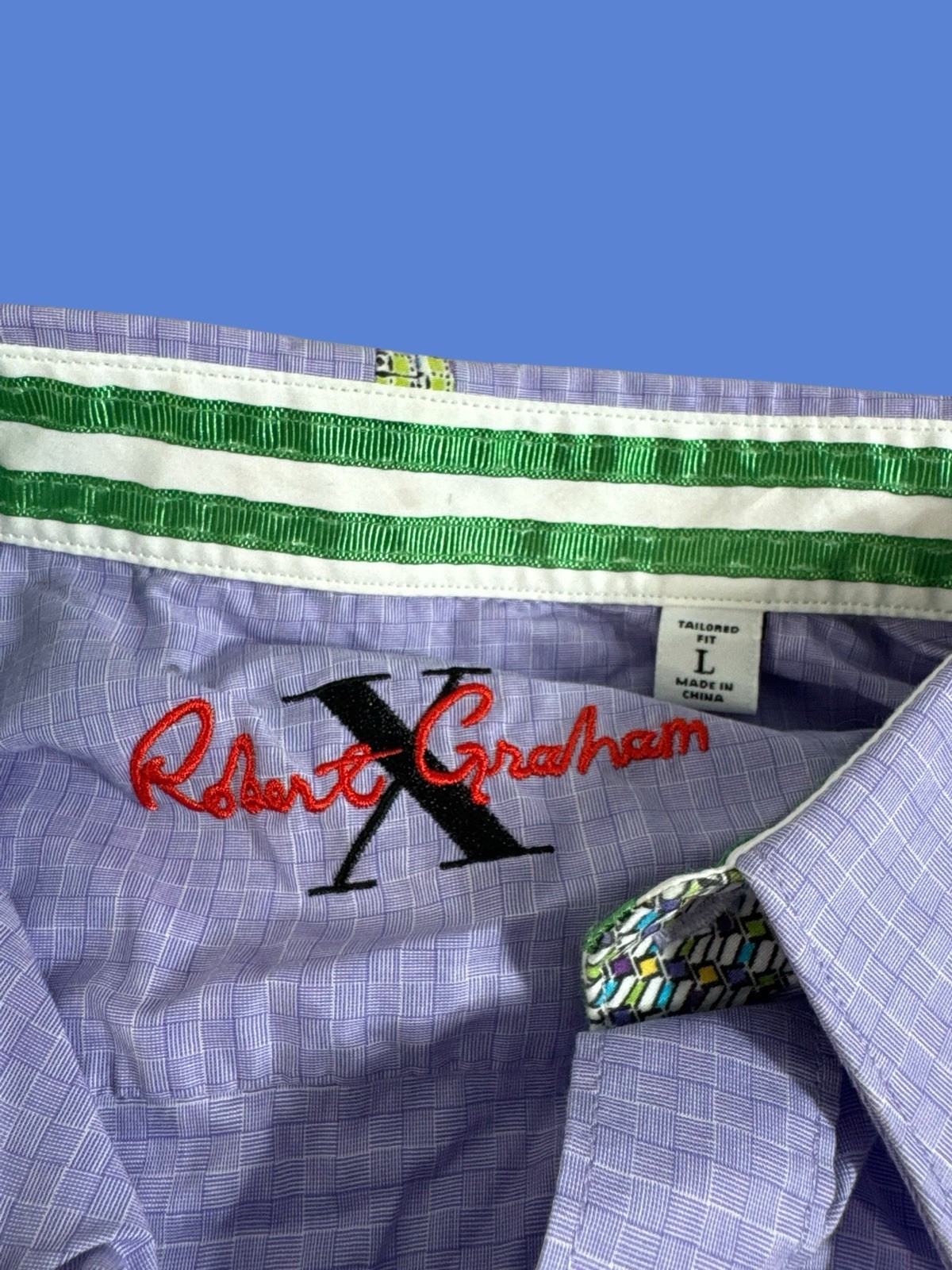 Robert Graham Shirt Men's L Tailored Fit Flip Cuff Button Up Long Sleeve Purple