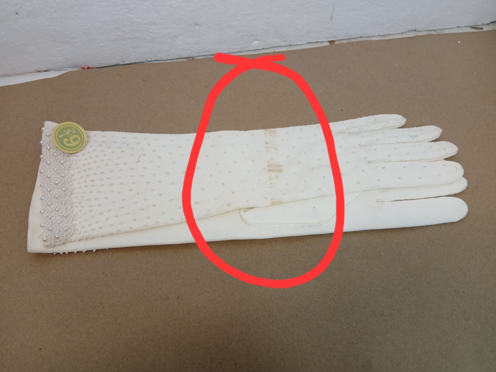 как выглядит Vintage 1960s Ivory Opera Gloves Pearl Beaded Cuff Size 6.5 Cotton Hong Kong фото