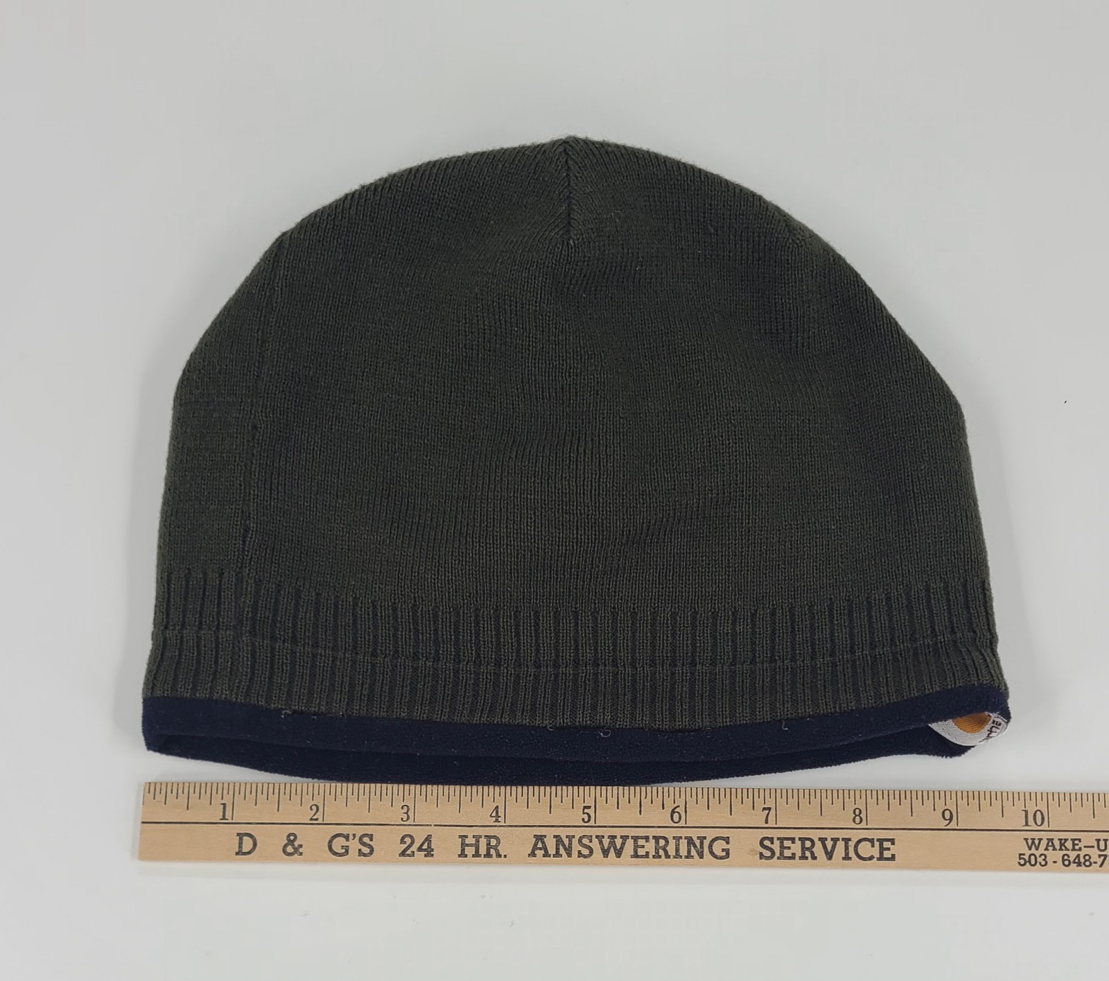 как выглядит Carhartt Youth Size Dark Green Knit Beanie Fleece Inside фото