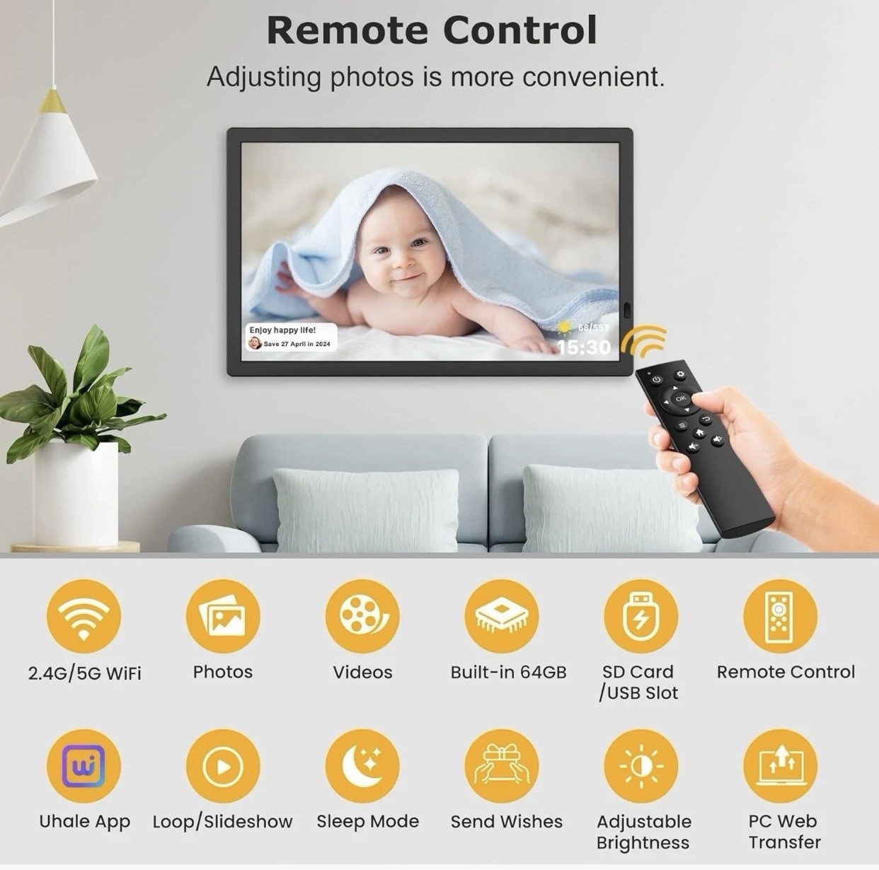 Digital Picture Frame 21.5 Large 64GB, WiFi Photo Frame 1920x1080 FHD 2024W Y