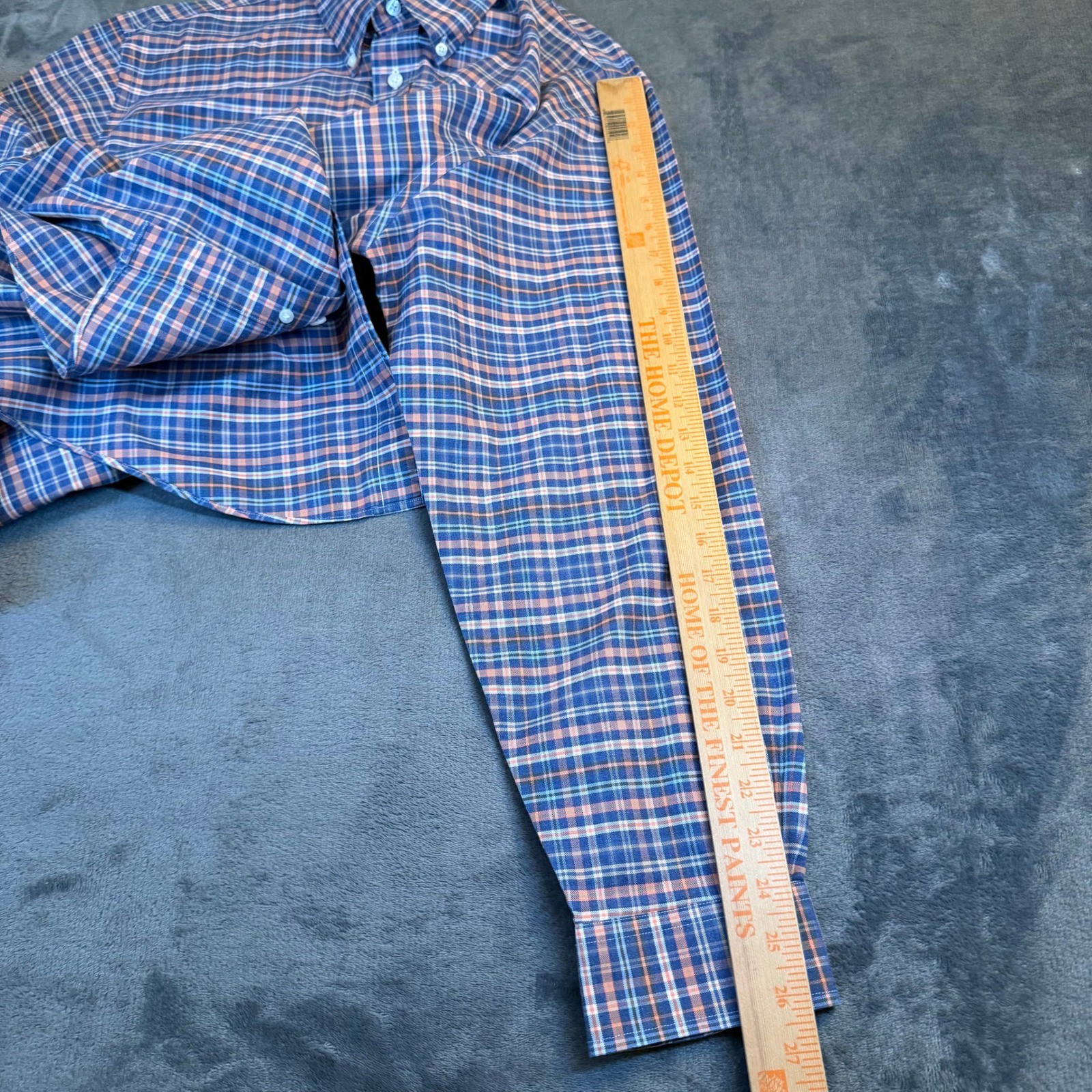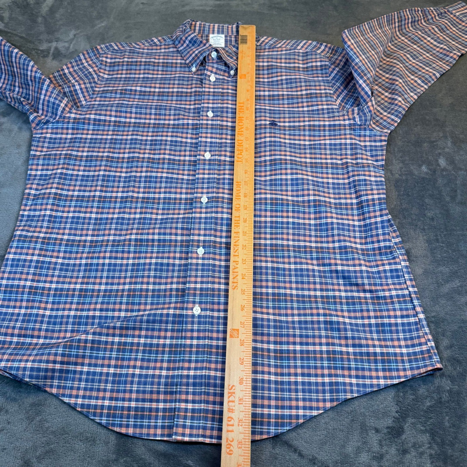как выглядит Brooks Brothers Button Up Mens XL Regent Fit Non-Iron Supima Plaid Blue Orange фото