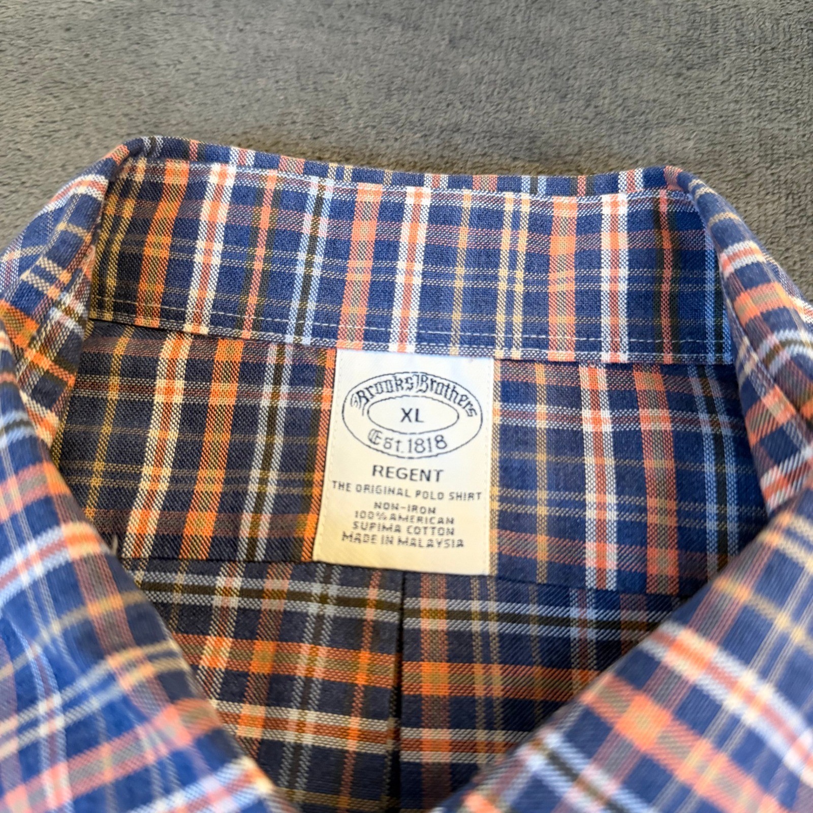 Brooks Brothers Button Up Mens XL Regent Fit Non-Iron Supima Plaid Blue Orange