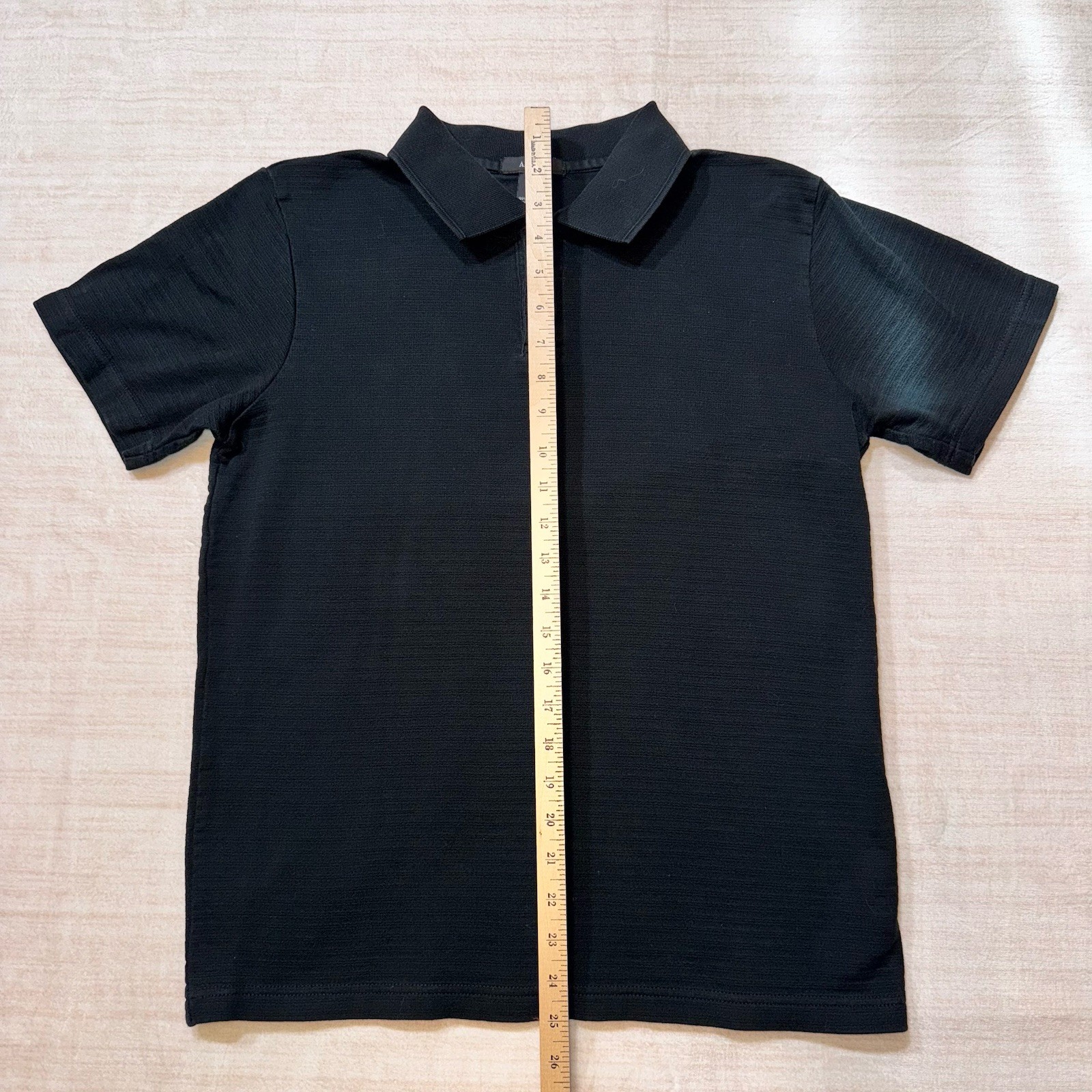 как выглядит Alfani Polo Shirt Men s Medium Black Textured Short Sleeve Stretch Casual Modern фото