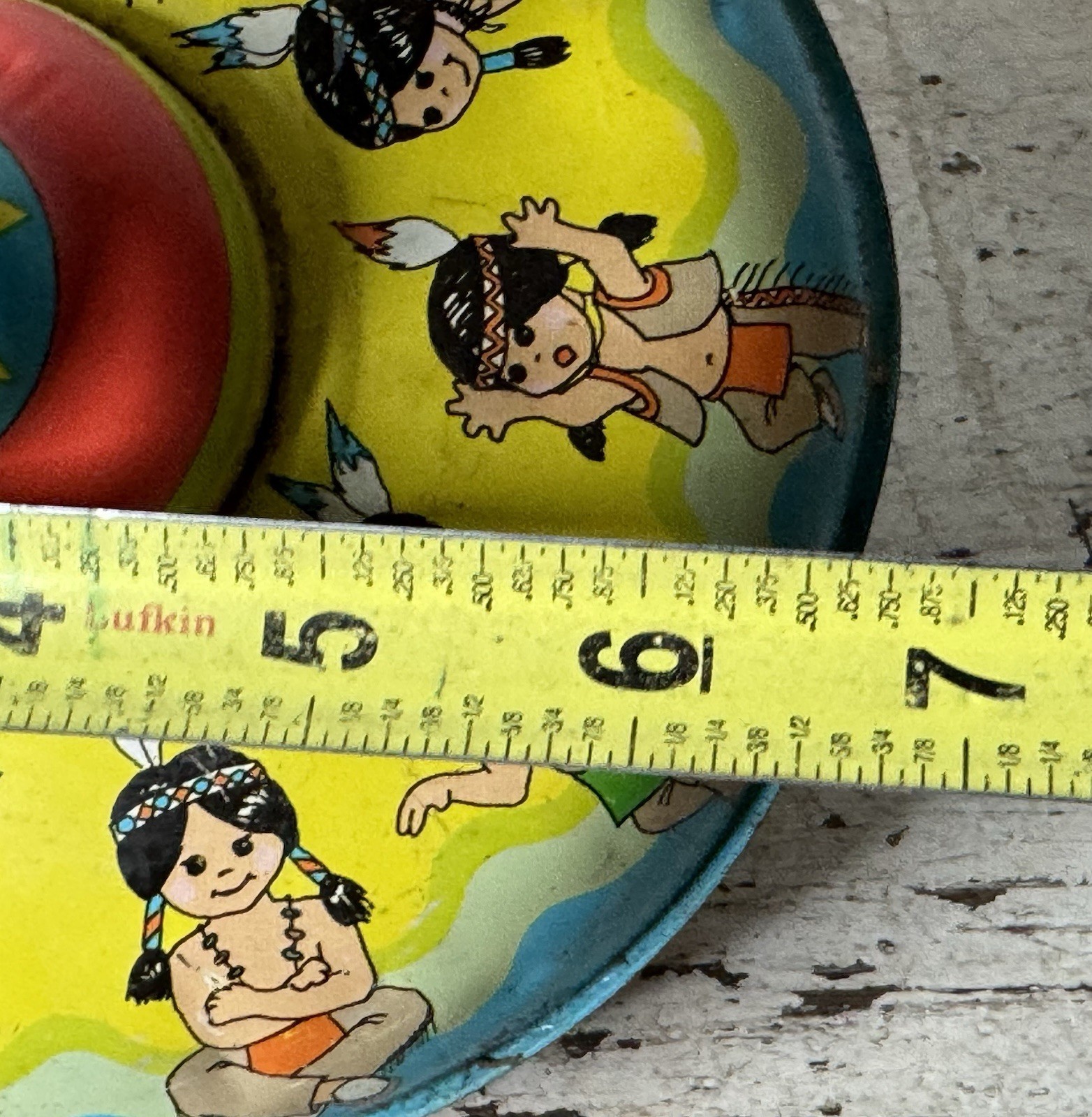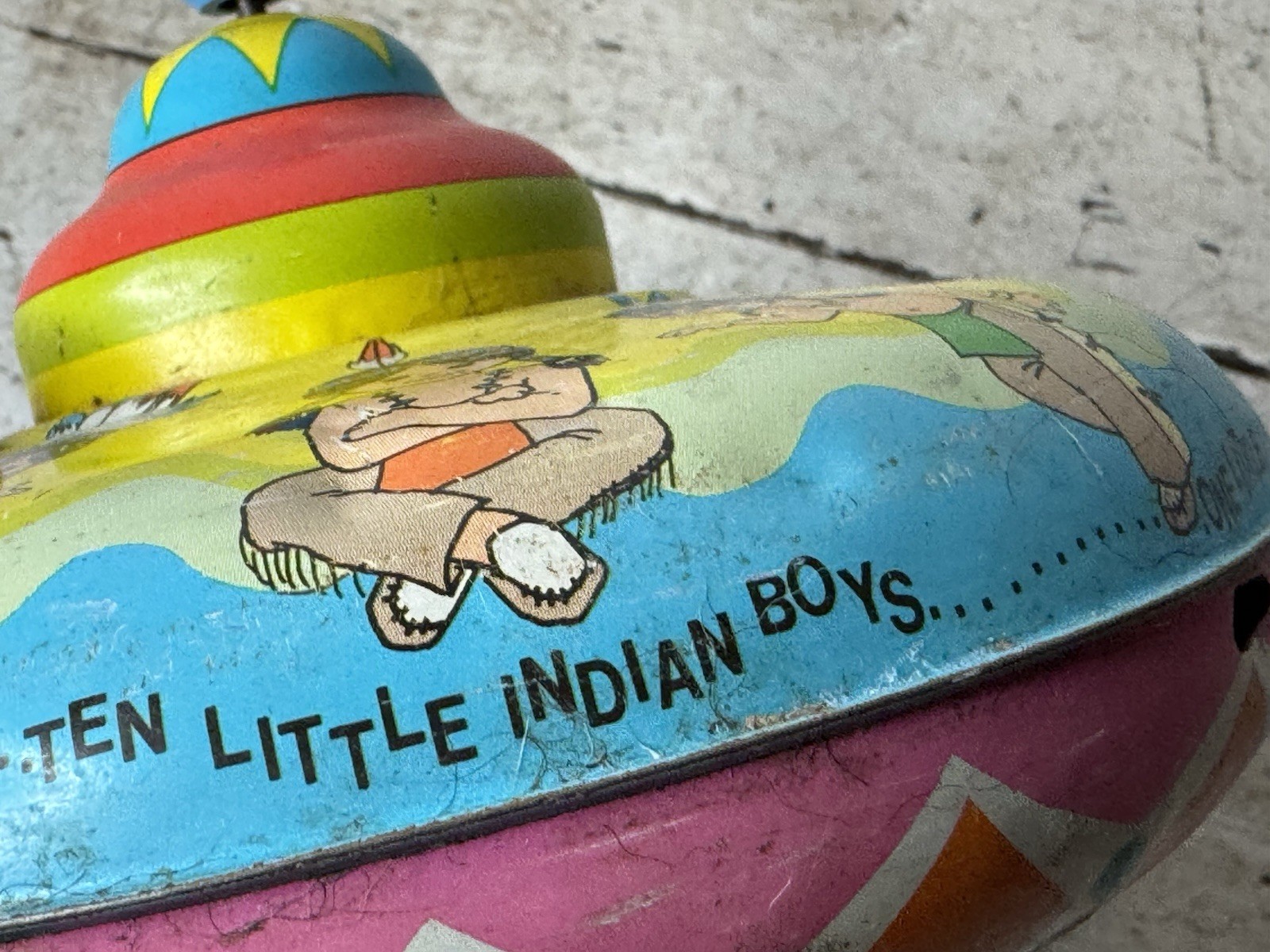 как выглядит Vintage Ohio Art Ten Little Indians Litho Metal Spinning Tin Top Toy, Works B502 фото