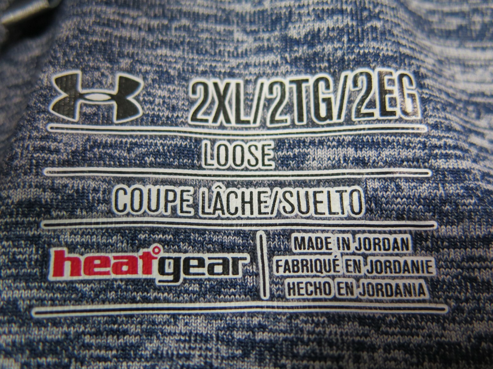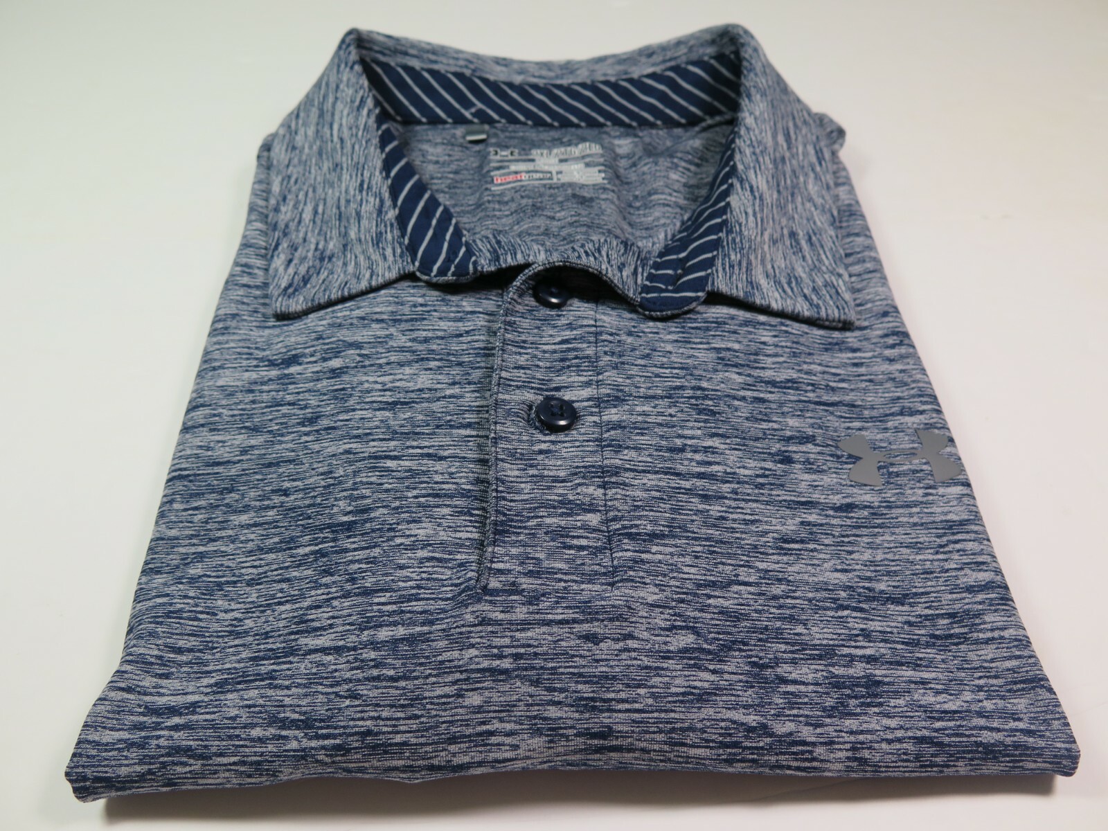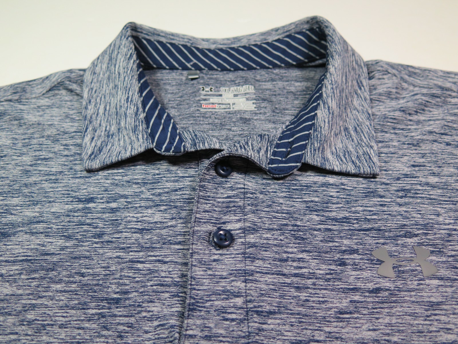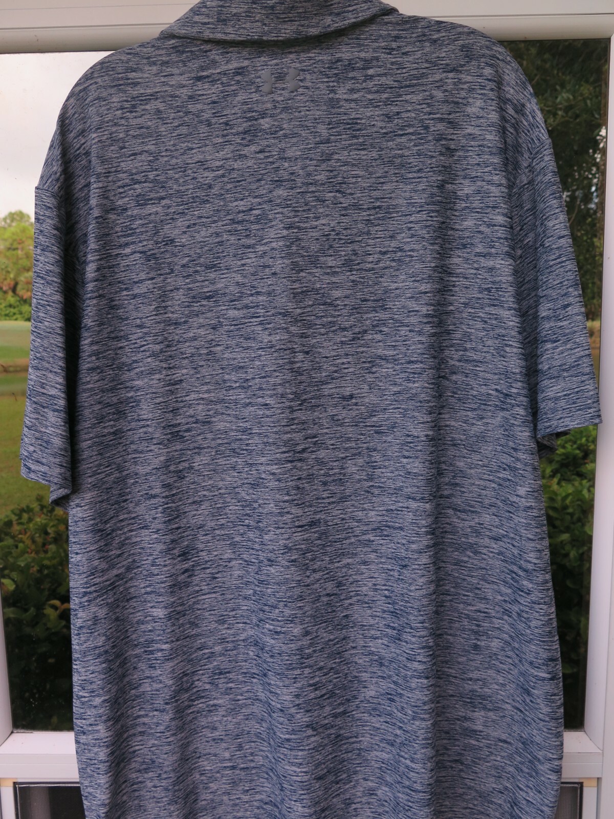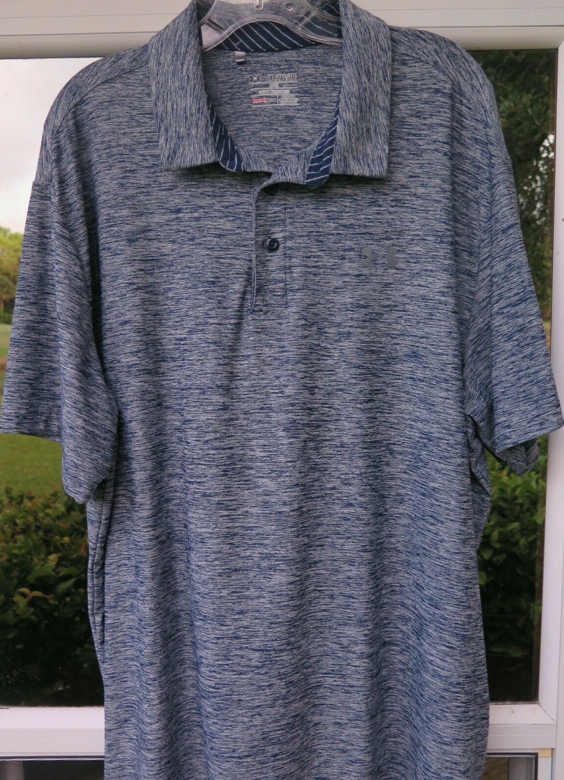 как выглядит Under Armour Heat Gear Loose Mens Stretch Blue Geometric Polo Shirt XXL 2XL EUC фото