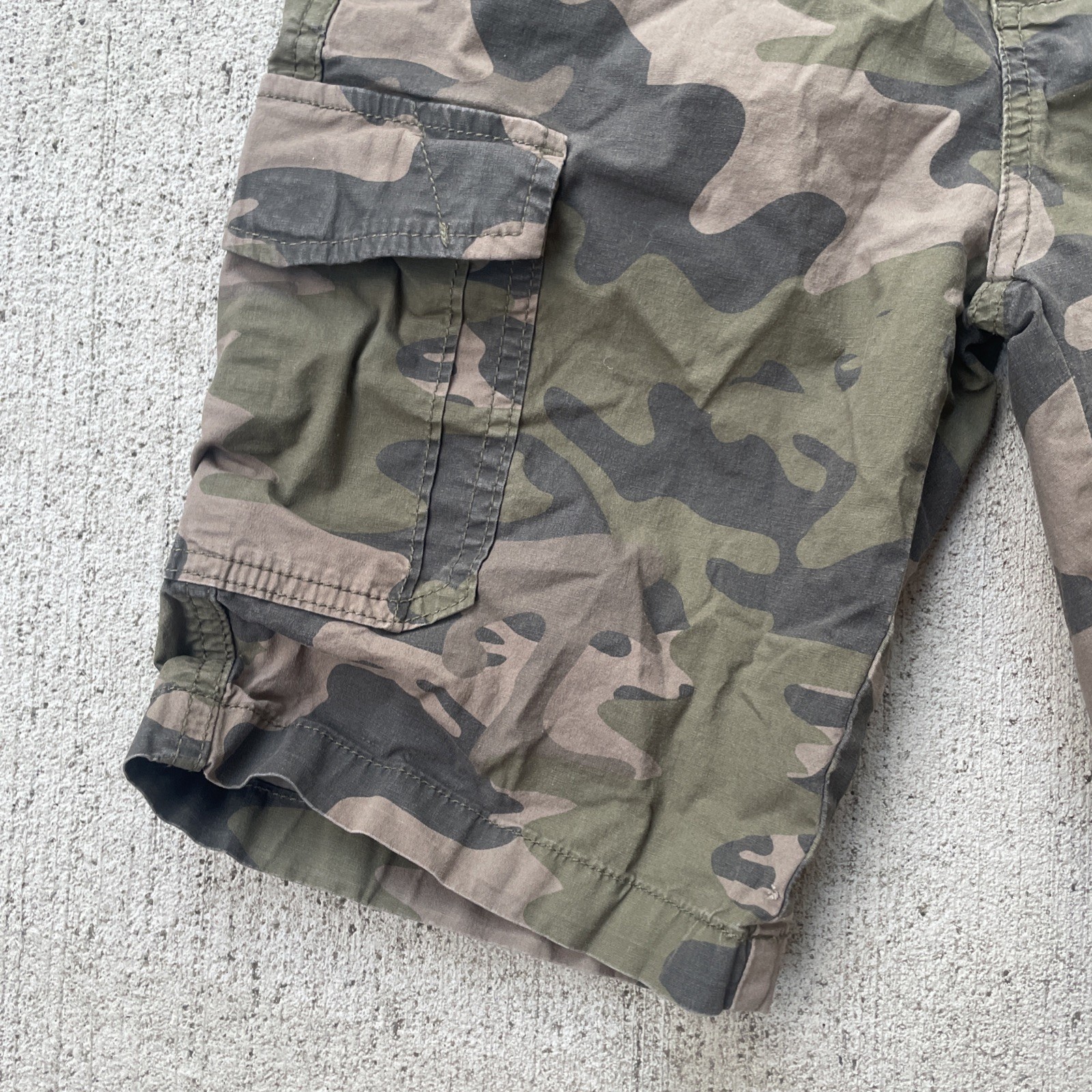 как выглядит Boys Lucky Brand Camo Cargo Shorts Size M 10-12 Green Adjustable Waist Pockets фото
