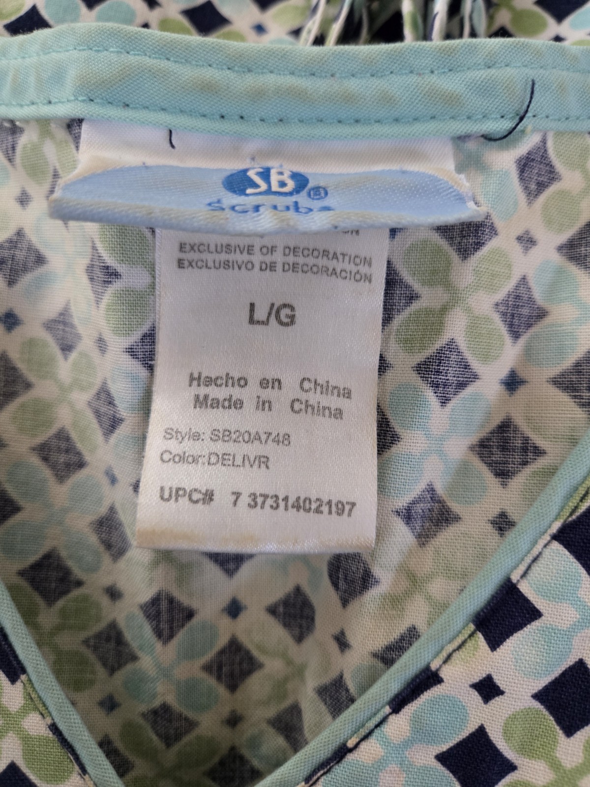 SB Scrubs Scrub Top size l-Turquoise/Navy Diamond Pattern-Chest 24.5/L 26.5