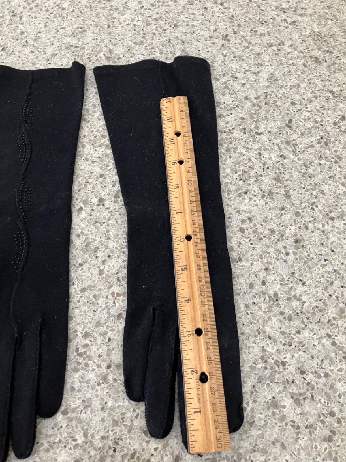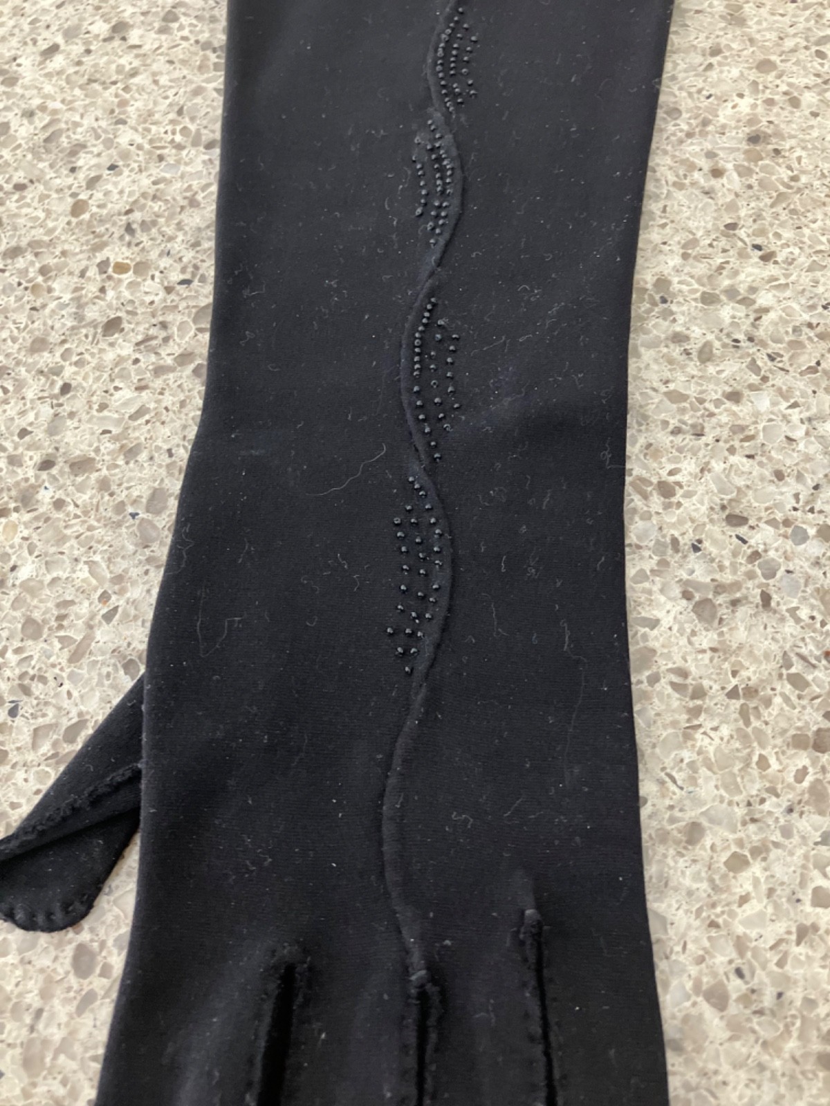 как выглядит Vtg Ladies 1940 s 50 s Black Beaded Evening Gloves Retro Wedding Prom MCM Prop фото