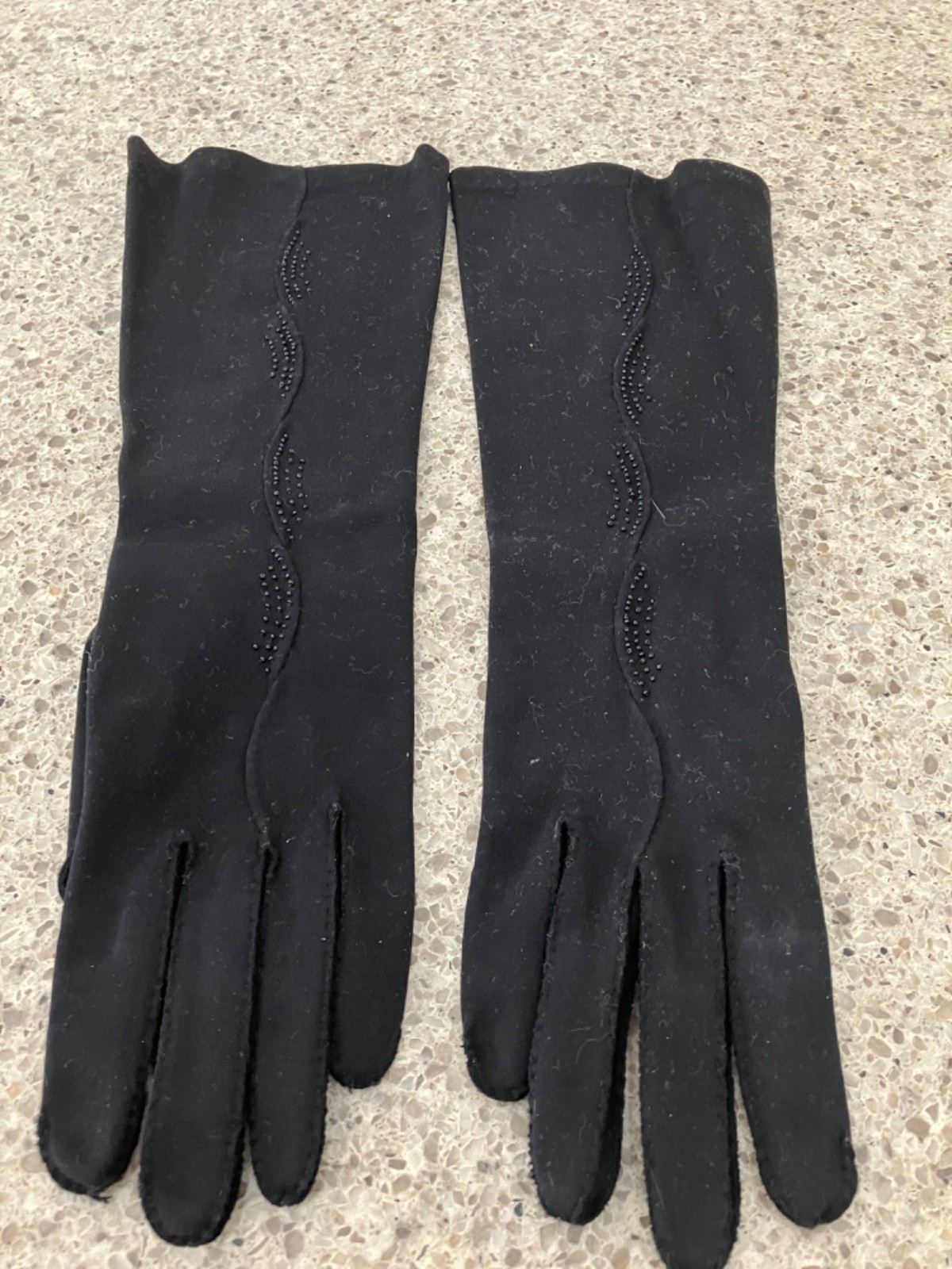 Vtg Ladies 1940 s 50 s Black Beaded Evening Gloves Retro Wedding Prom MCM Prop