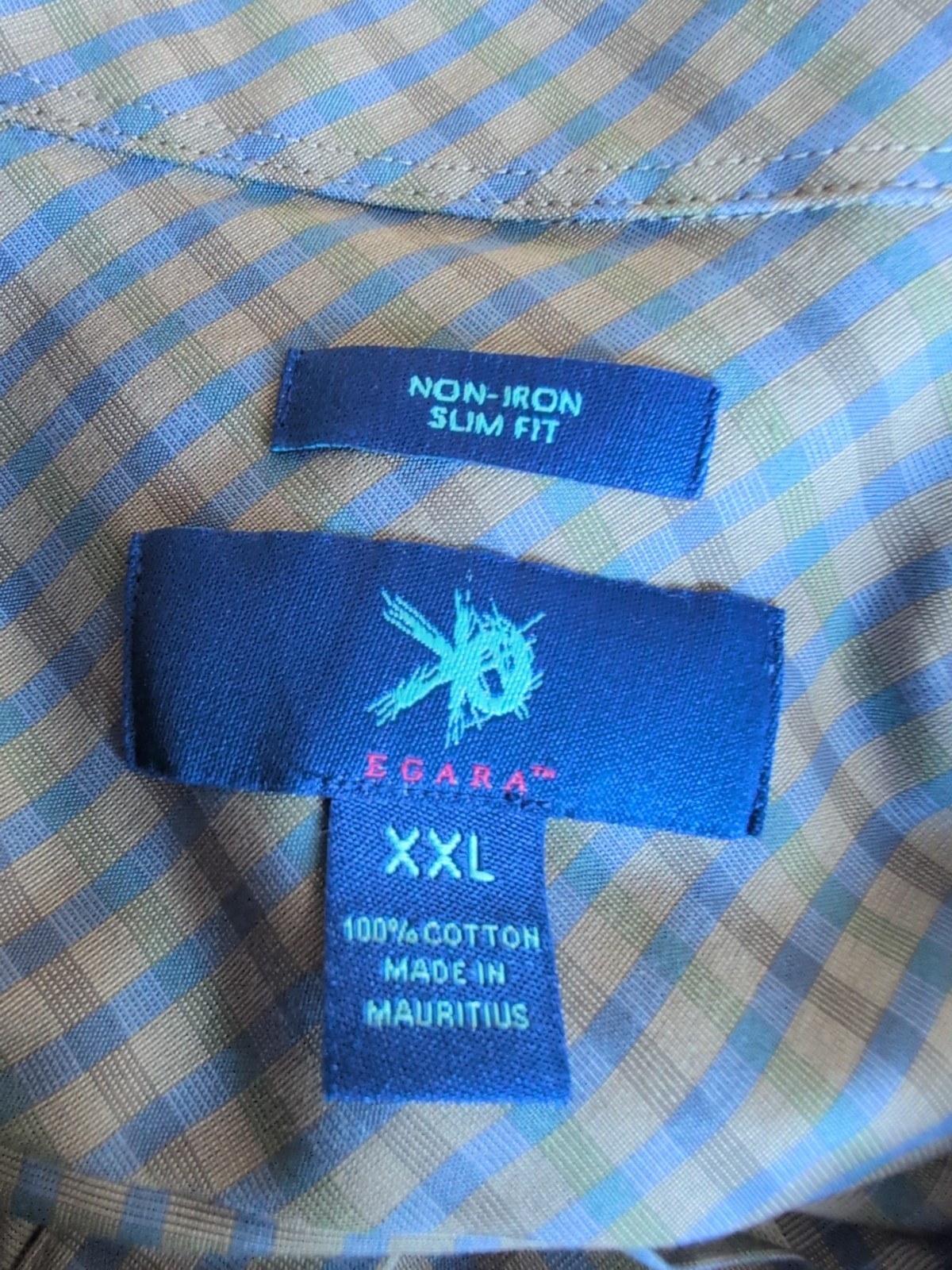 Egara Mens Shirt XXL Slim Fit Blue Check Non Iron Button Front L/S Cotton
