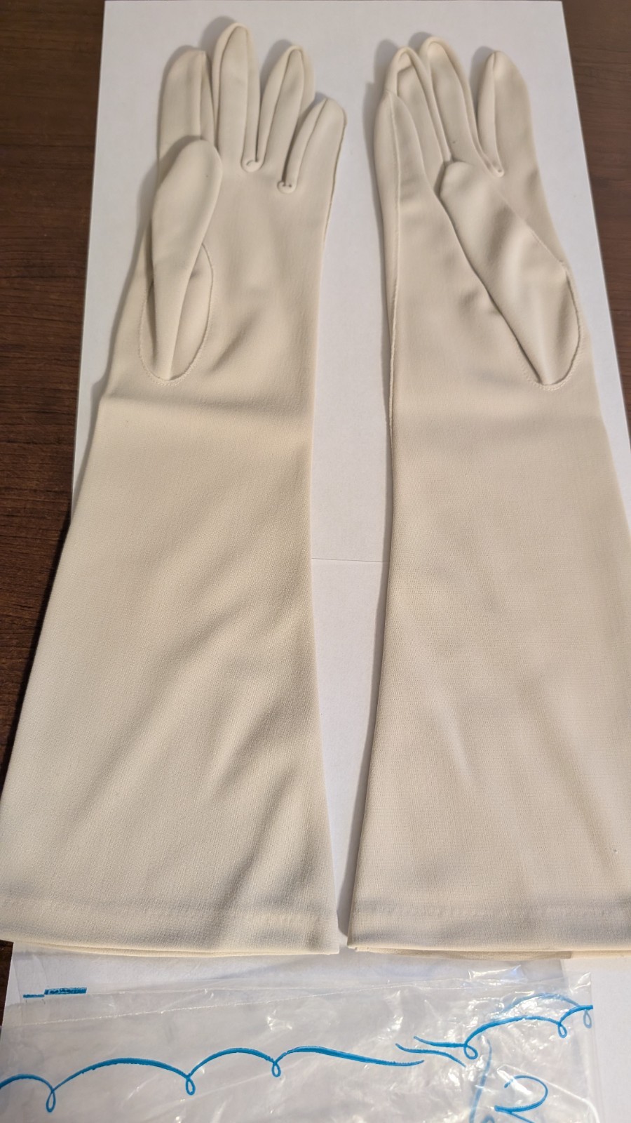 как выглядит Van Raalte XL Beige Stretch Nylon Formal 15" Long Opera Gloves Vintage фото