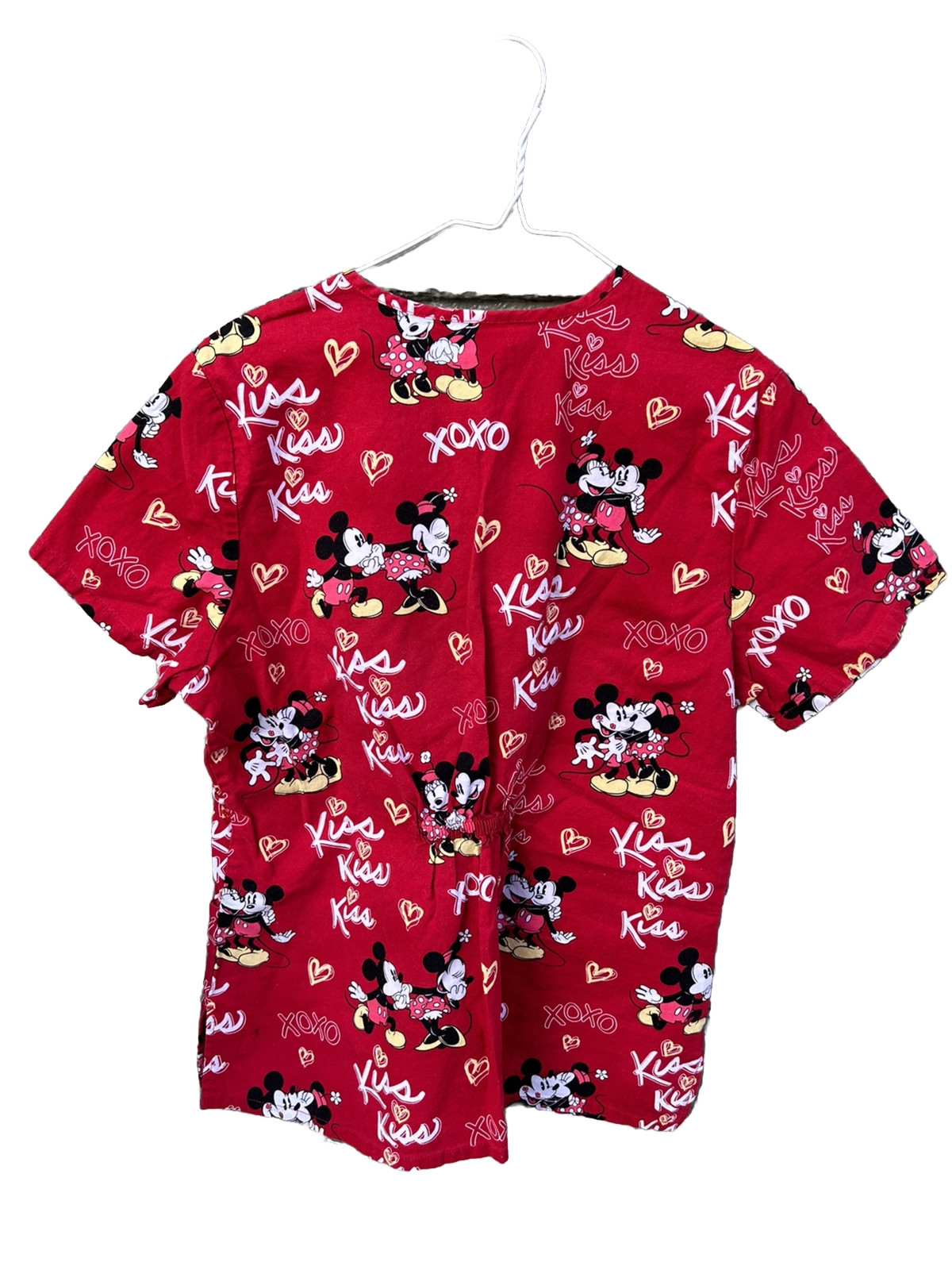 Disney Minnie and Mickey Scrub Top Red Love Kiss Hearts XOXO Valentine Size M