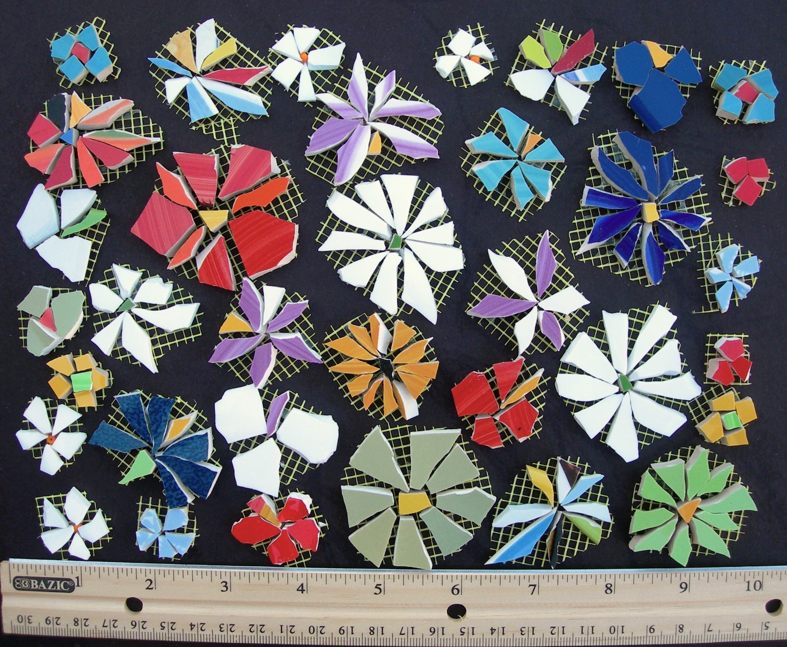 35 Colorful Daisy Mosaic Tile Set Mix Size Handmade China Plate Tiles on Mesh