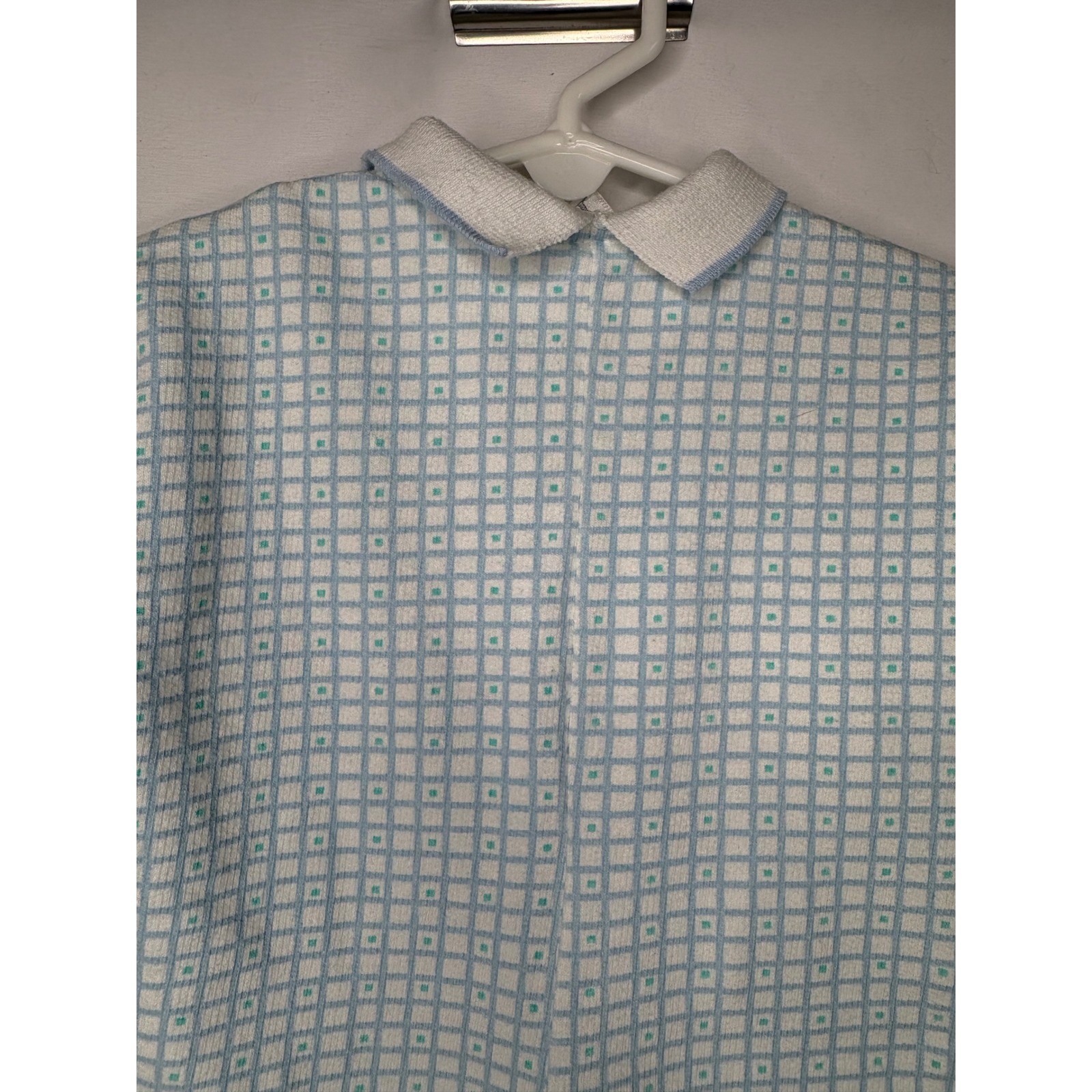 как выглядит Vintage Baby Dior Blue White Grid Puppy Dog Embroidered Romper One pc Pajamas фото