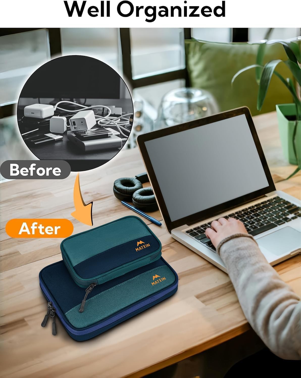 MATEIN Electronics Organizer Travel Case 2 Pack, Water Resistant Small, Blue