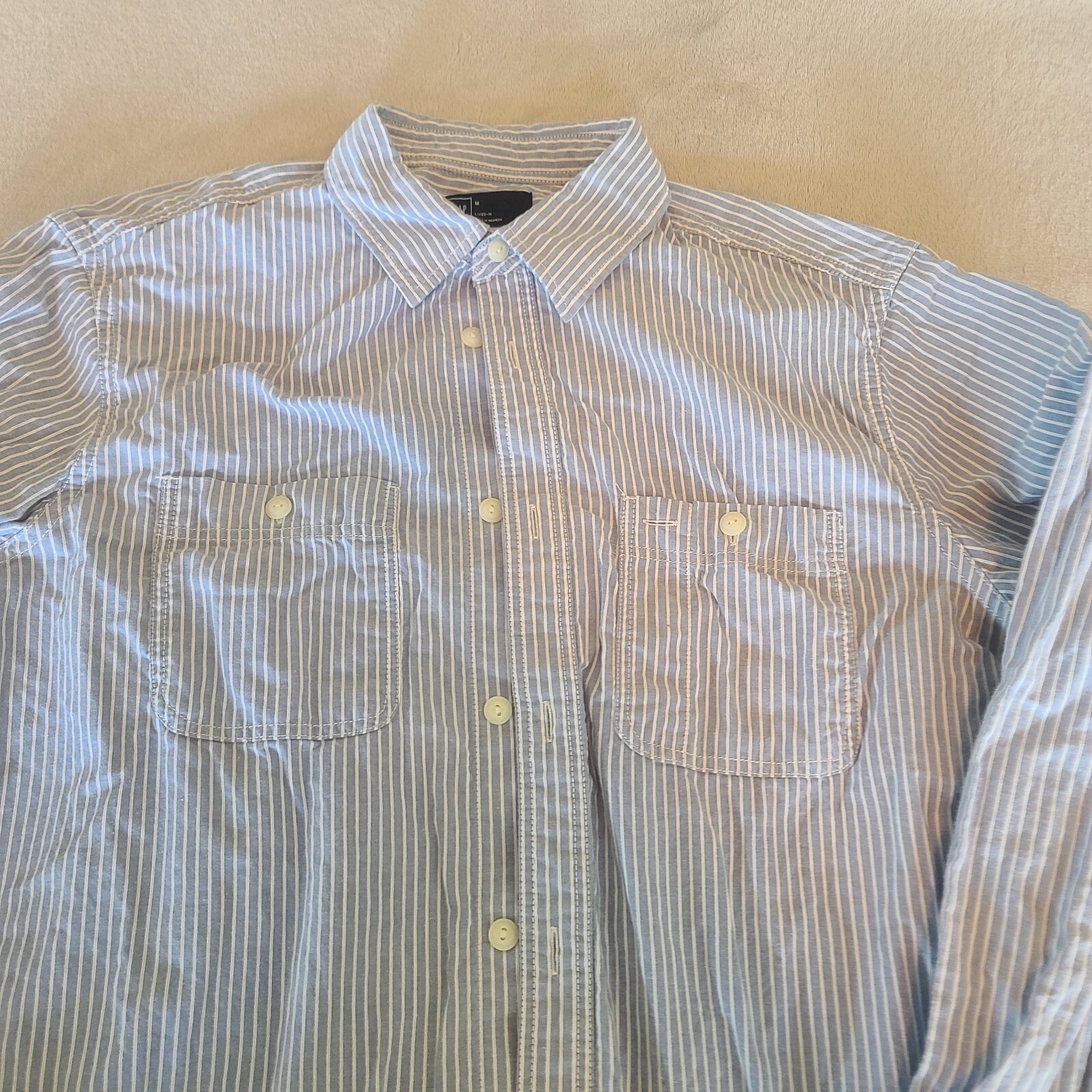 как выглядит Gap Mens Medium White Blue Stripe Casual Button Up Dress Shirt фото