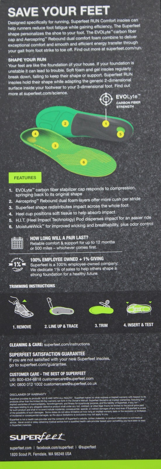 Superfeet RUN Comfort Insole Citron/ Green, MENS 7.5-9;WMNS 8.5-10 FREE SHIPPING