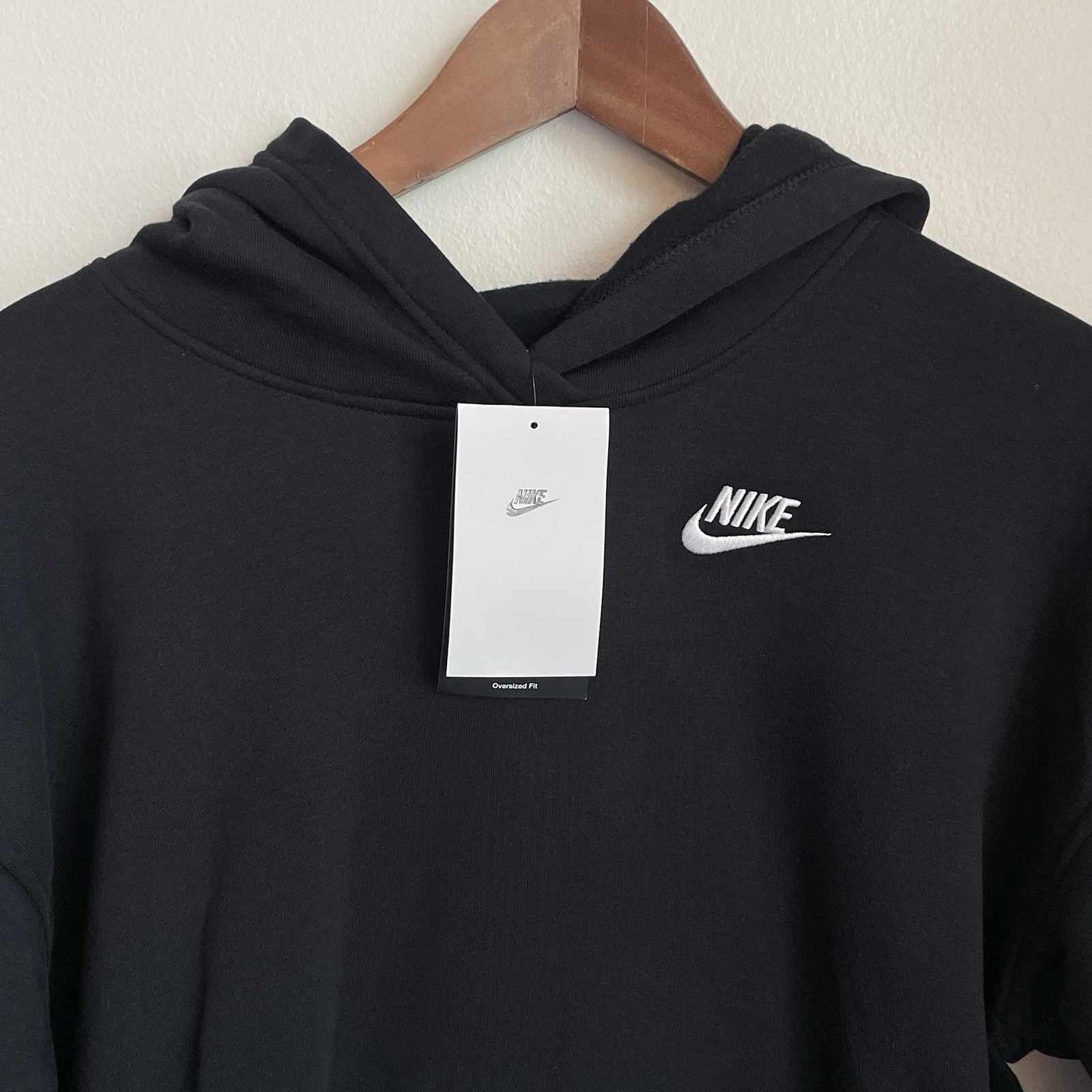 NWT Nike Black Hoodie Kids Large Club Fleece Pullover Sweatshirt Sportswear
