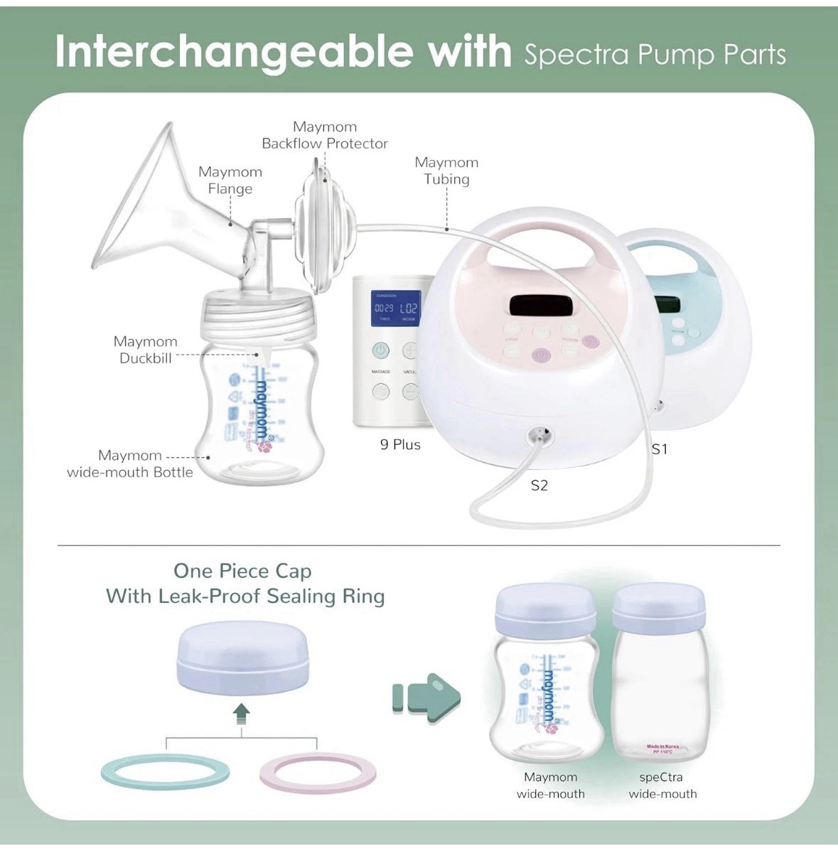 Pump Parts Kit-Spectra S2 S1 9 Breast Pump 24mm Flange Duckbill Valve Silicone