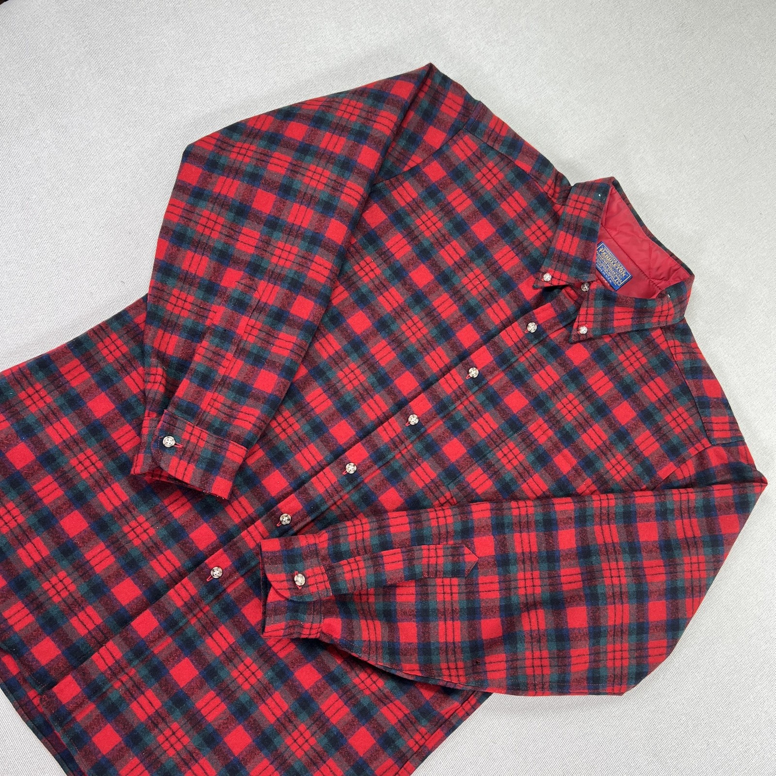 как выглядит Vintage 90s Pendleton Shirt Mens L Red Tartan Plaid Wool Lodge Flannel Made USA фото
