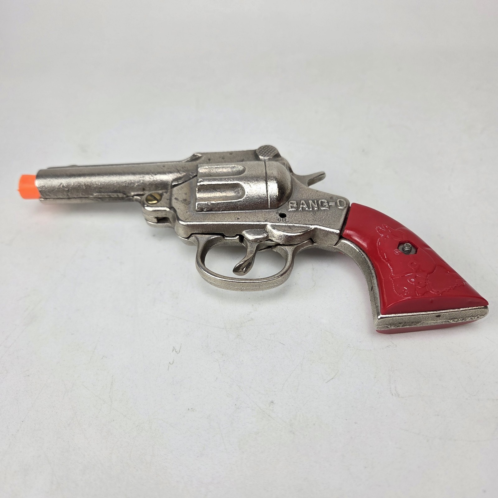 Stevens c. 1938 BANG-O Cast Iron Roll Cap Western Cap Gun Red Handle B5.1.1 B