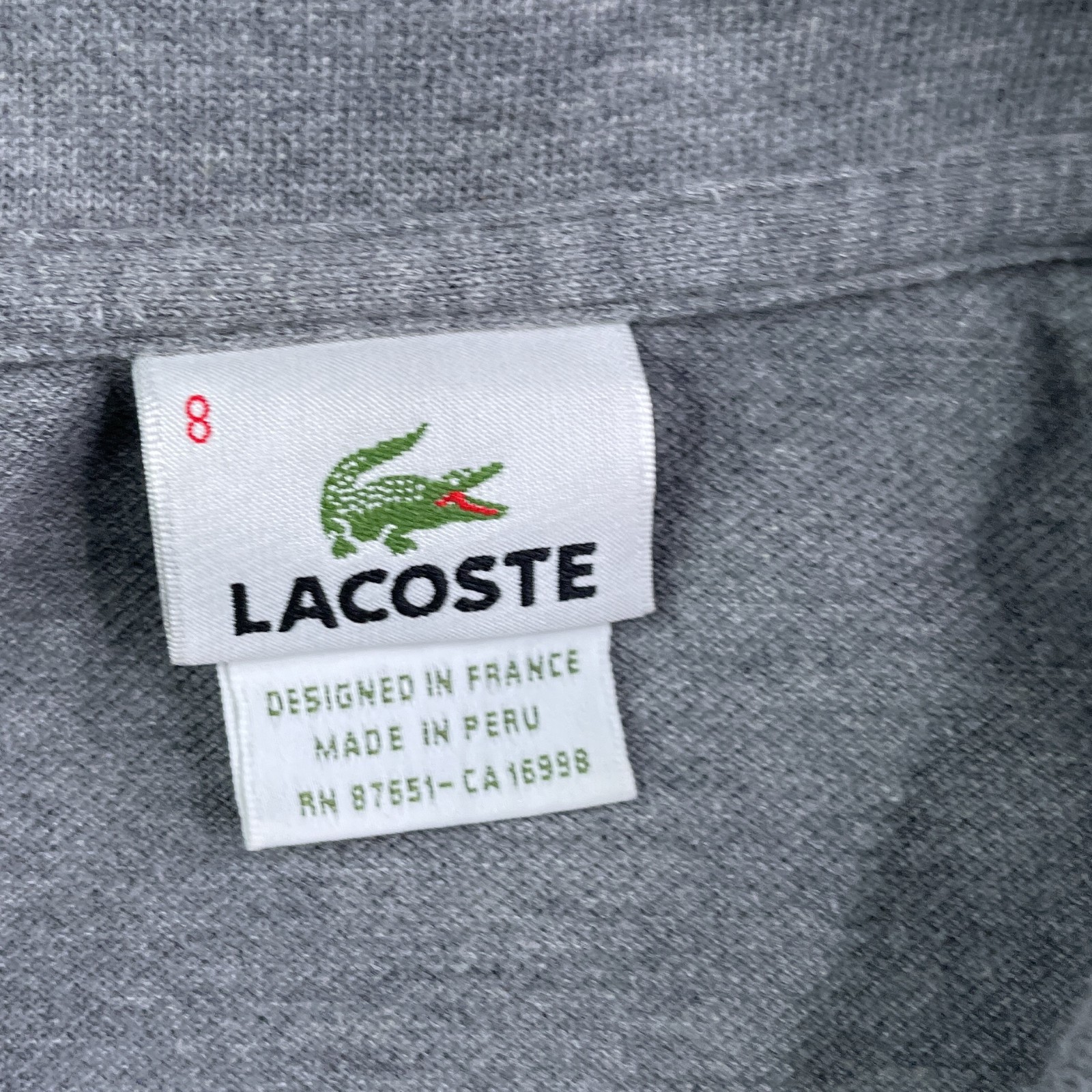 Lacoste Polo Shirt Mens 3XL 8 Grey Pique Cotton Tennis Golf Contrast Pop Collar