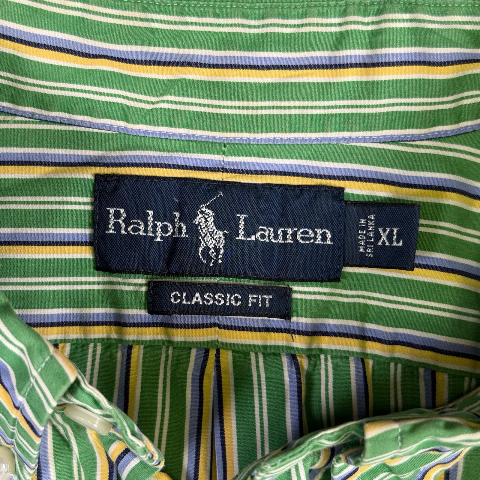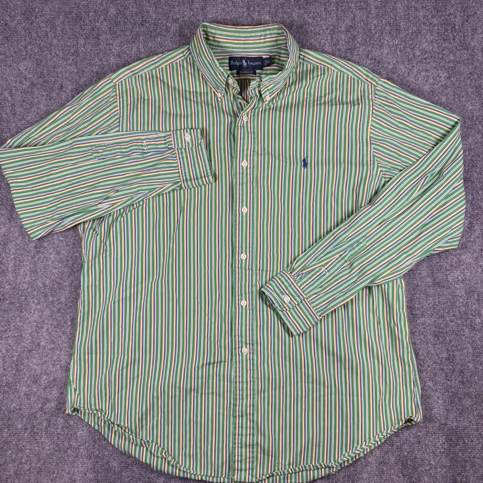 Ralph Lauren Classic Fit Shirt Mens XL Green Stripe Button Down Pony