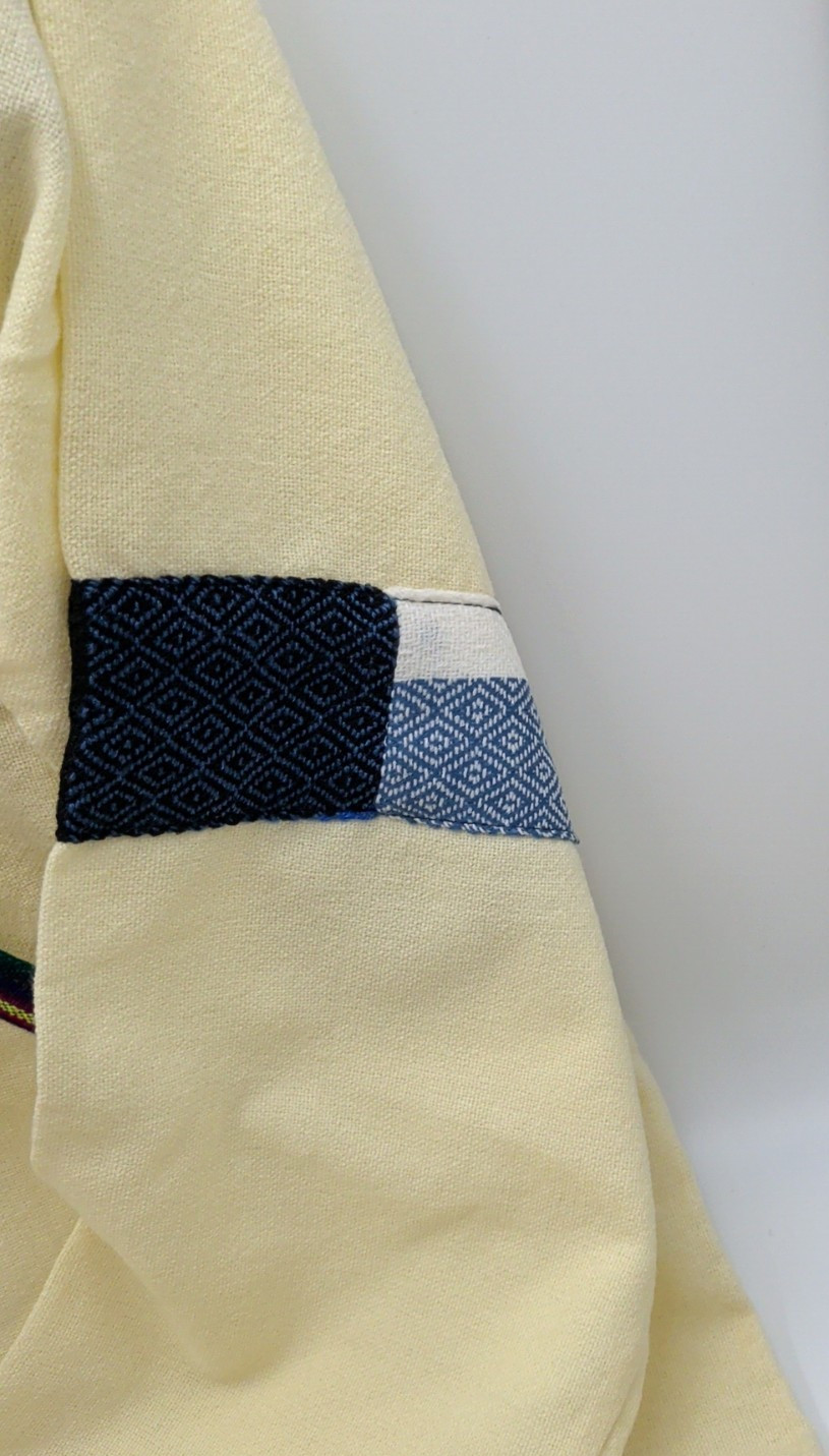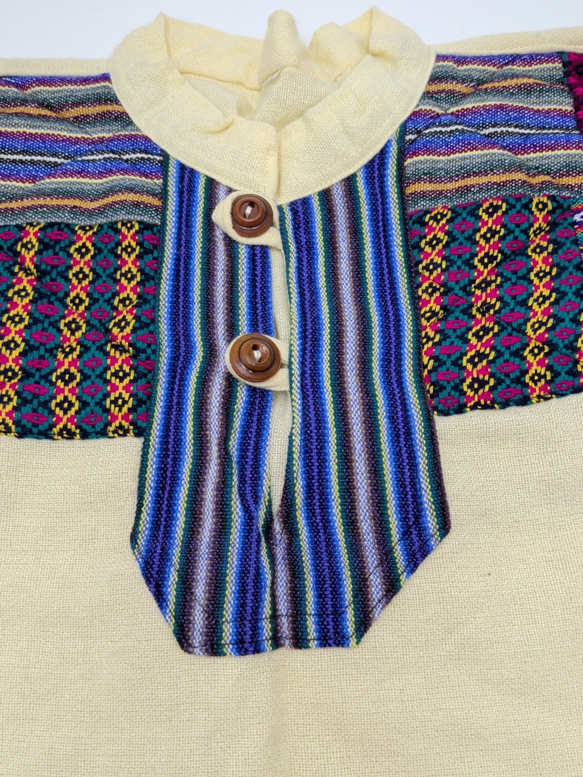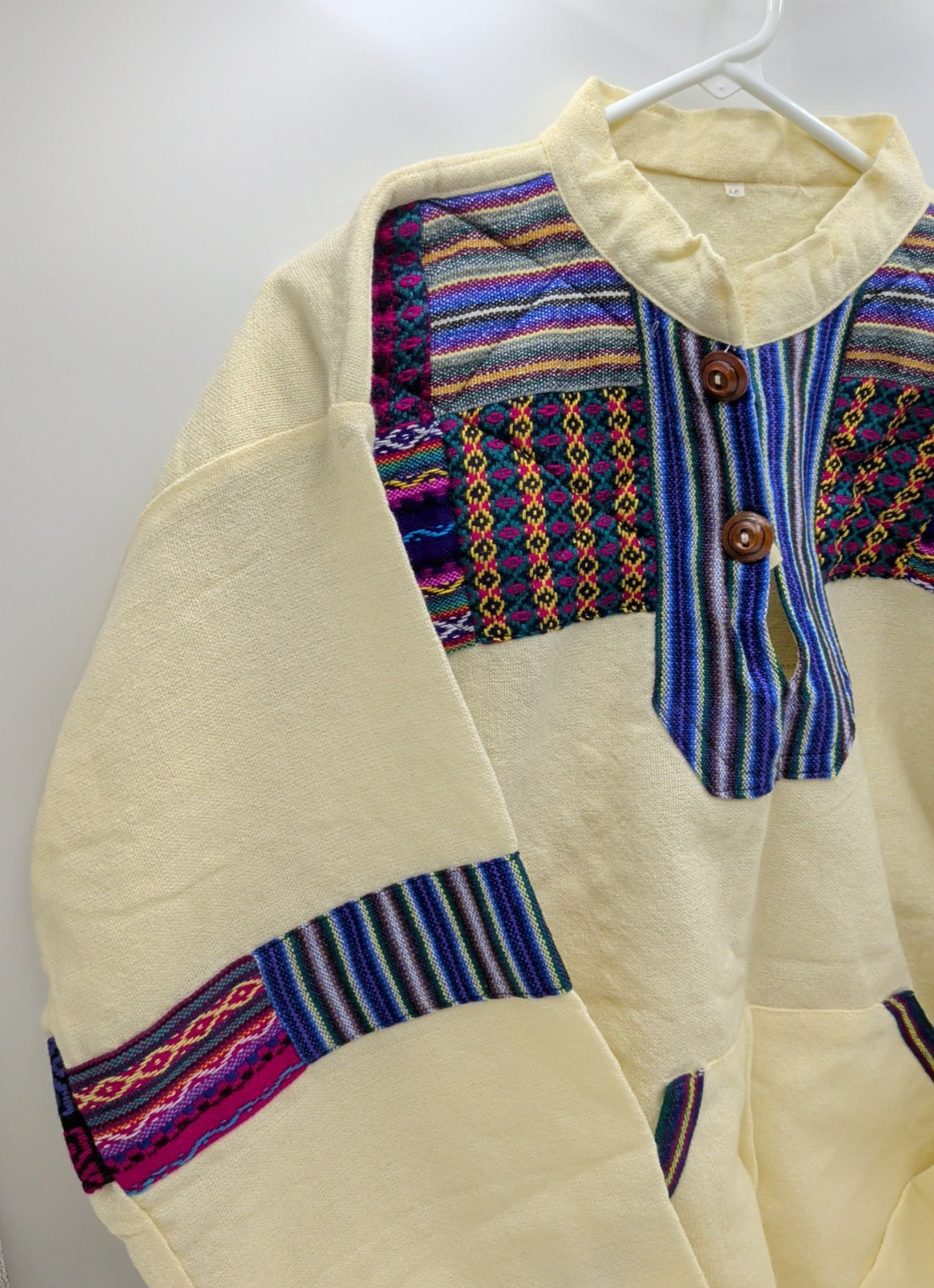 Men's Kurta Top Cream Patchwork Cotton Drawstring Bottom Pockets SZ 46 SEE PICS