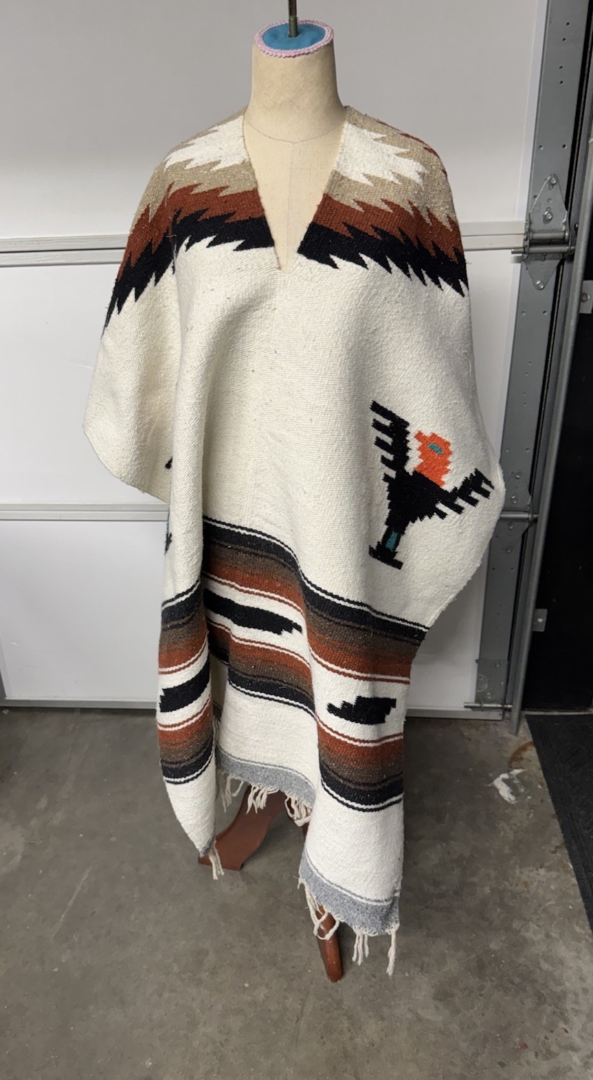 Vintage Southwestern Aztec Thunderbird Chimayo Poncho 72x37