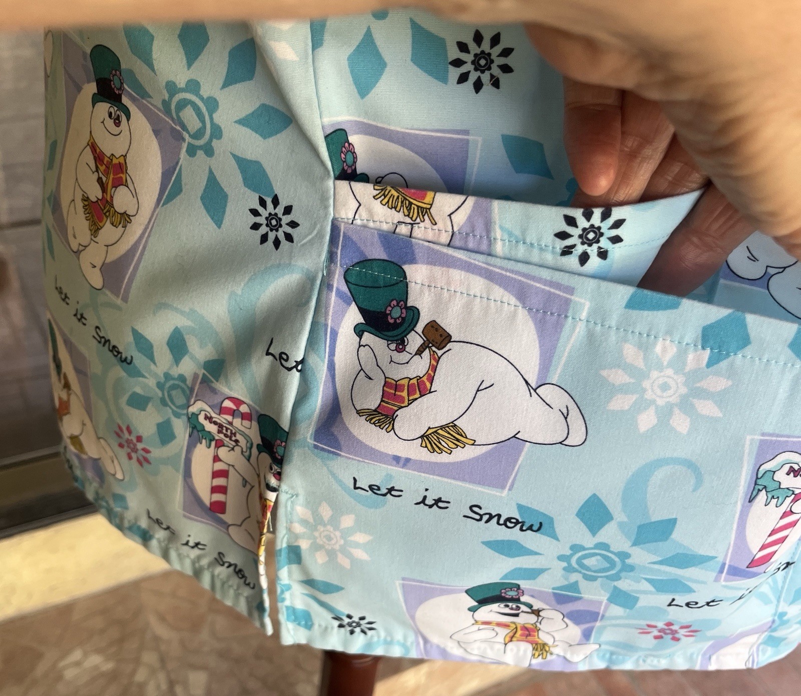 как выглядит Frosty The Snowman Let It Snow Double Pocket Christmas Scrub Top Sz XL 50 Bust фото