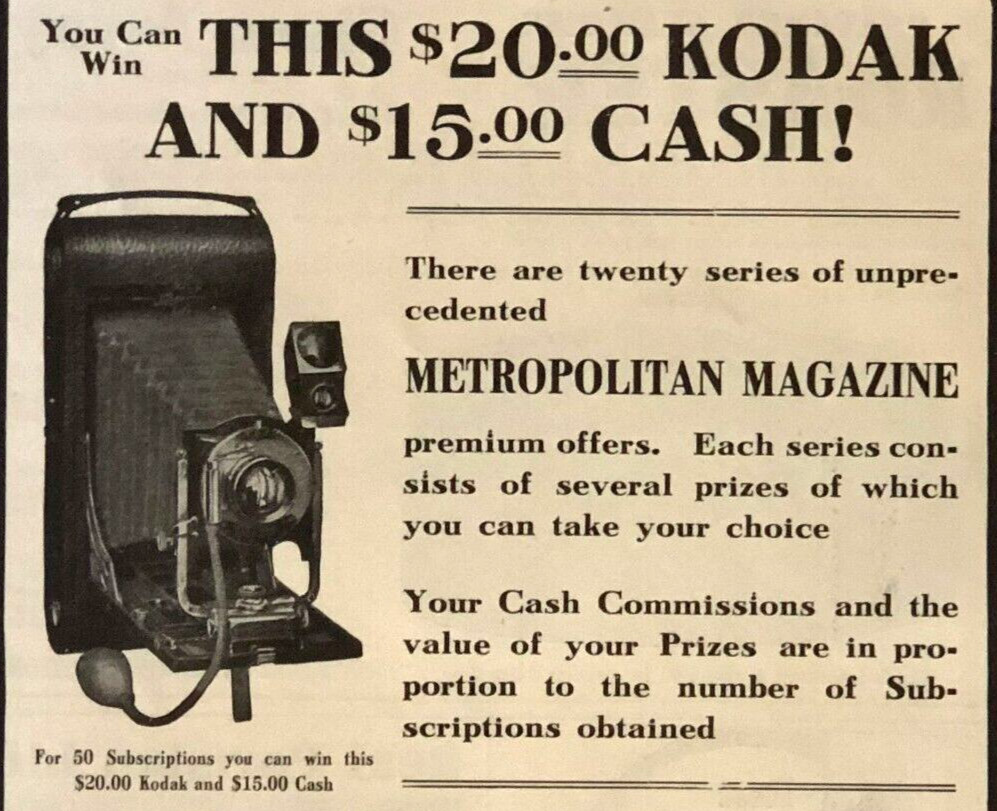 • Kodak Folding Camera Advertisement 1907 Magazine Premium Prize Antique Print AD