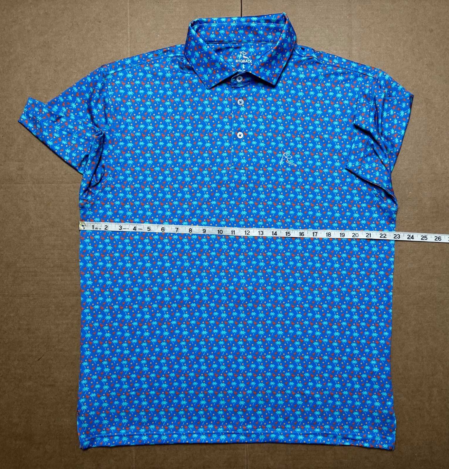 как выглядит Rhoback Men s Large Polo The Snowbird Light Blue Flamingos and Palm Trees фото