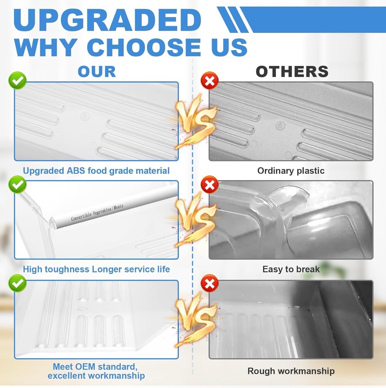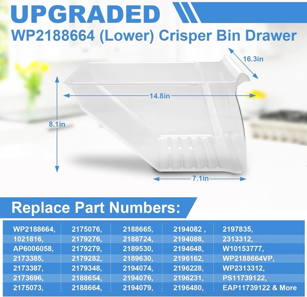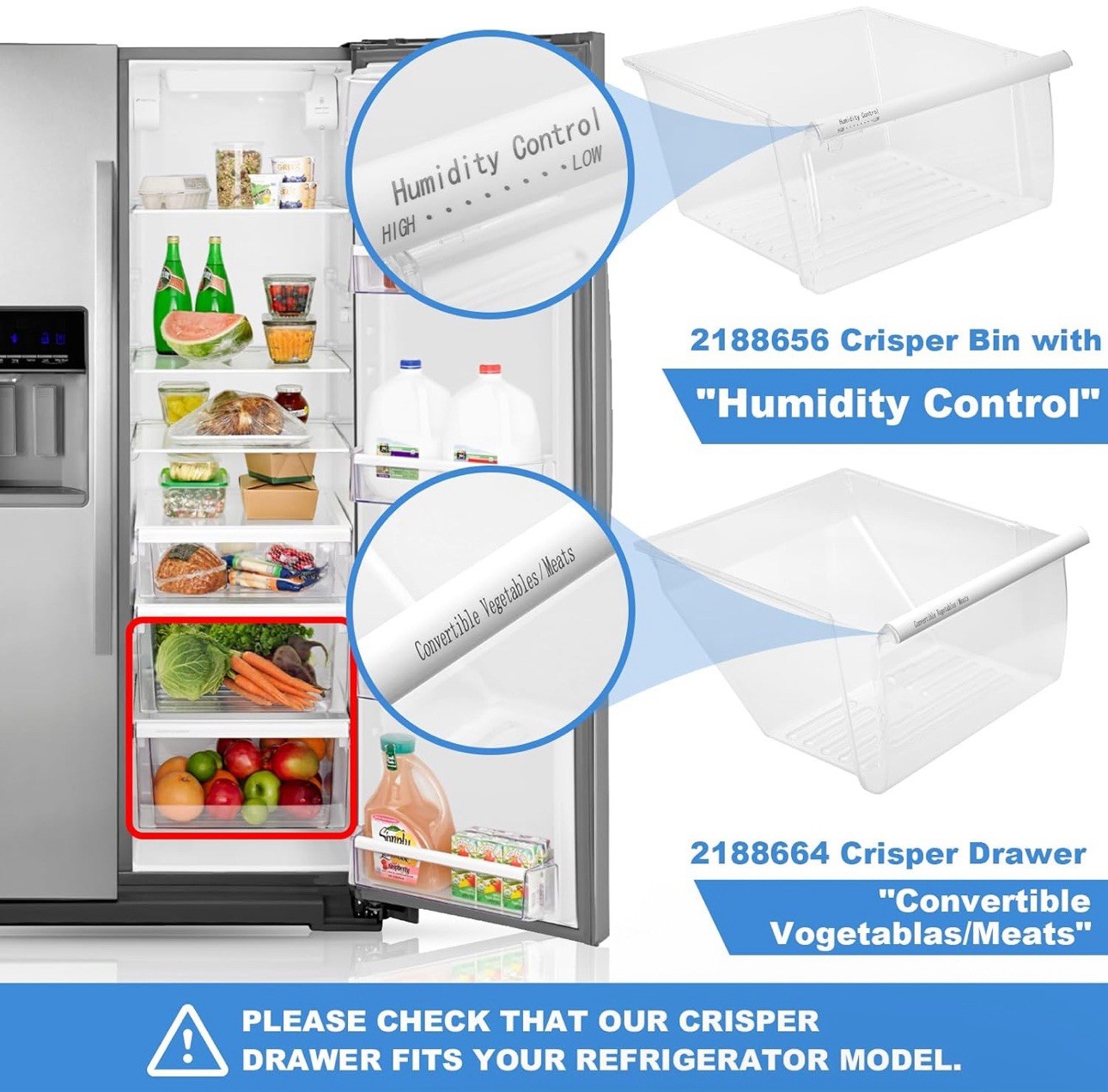 2 PACK Upgraded 2188656 Upper Refrigerator Crisper Bin 2188664 Lower Fridge