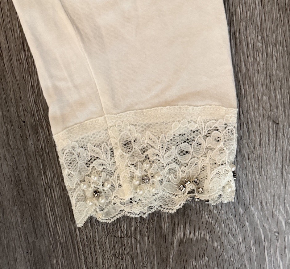 как выглядит NWT Miss Grant Couture Girls Cream Lace-Trim Capri Leggings Size 38 - 10/11 фото