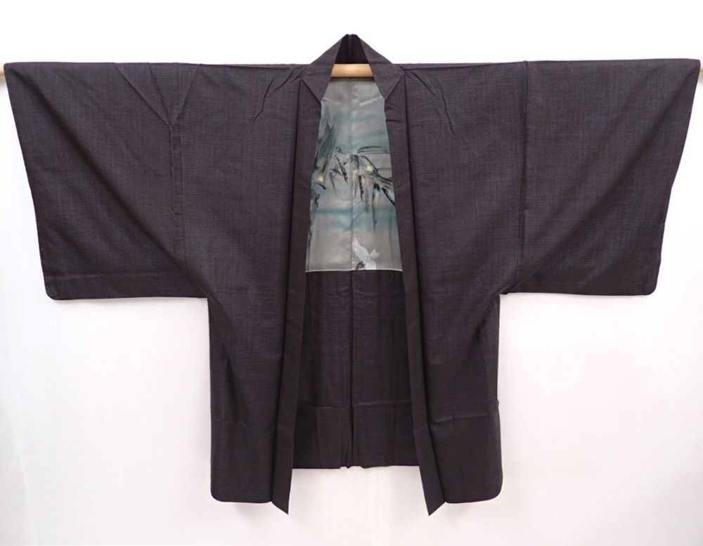 • 6309T02z460 Vintage Japanese Kimono Silk Men's OSHIMA HAORI Dark brown