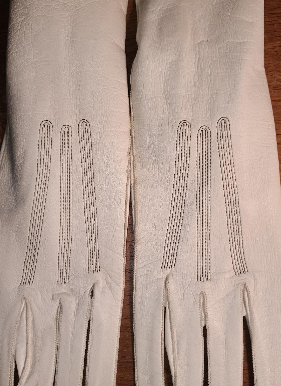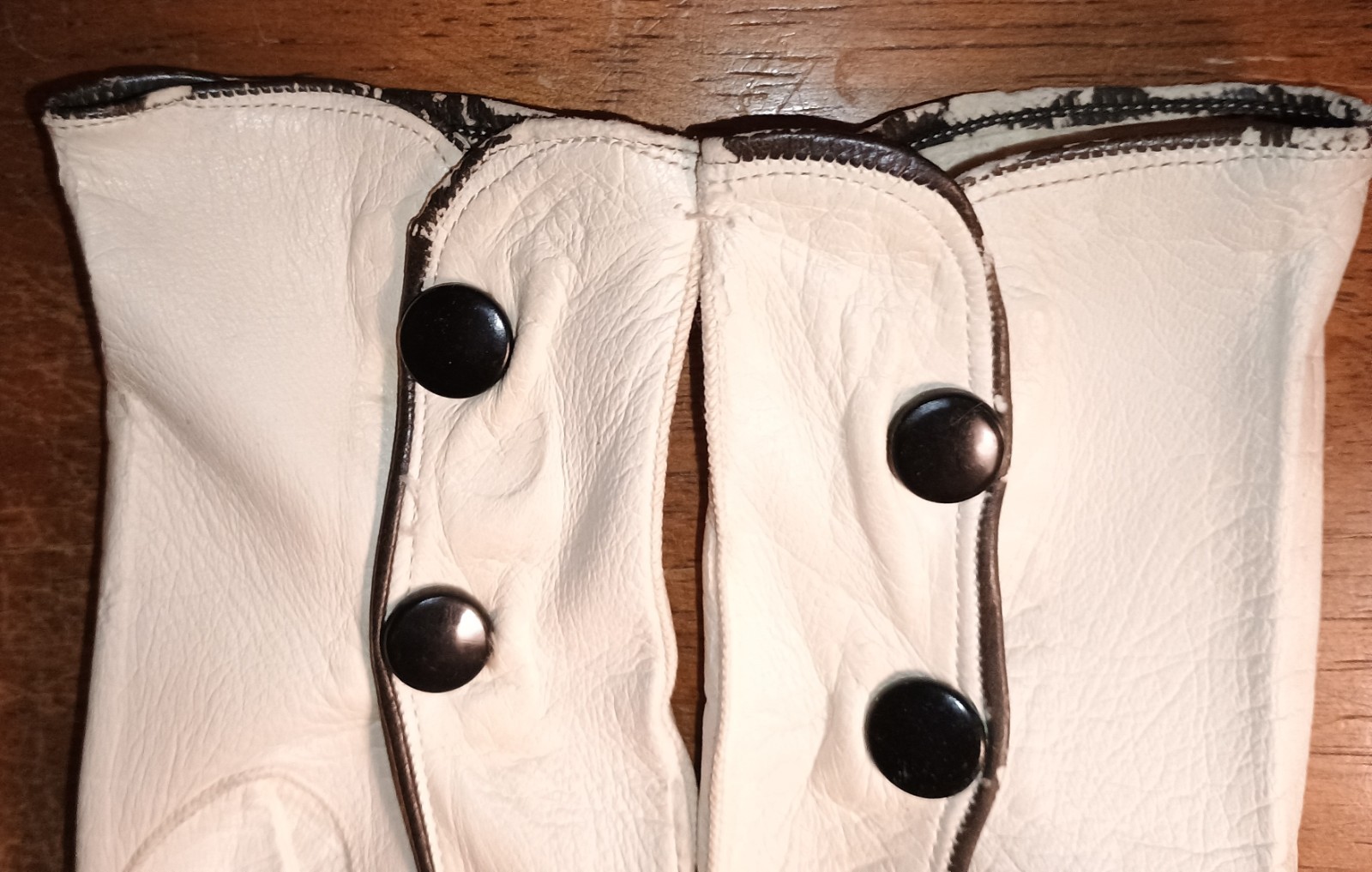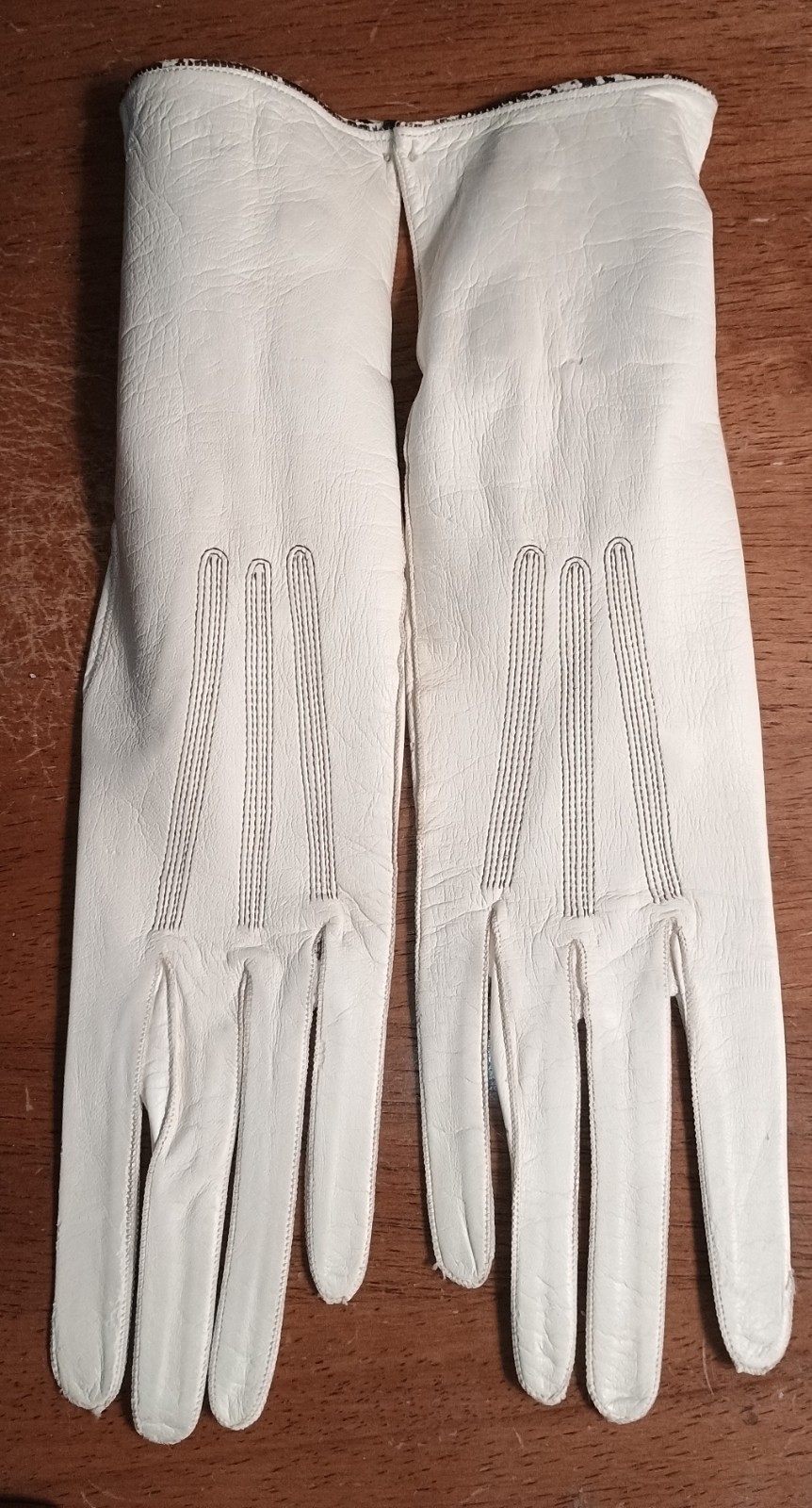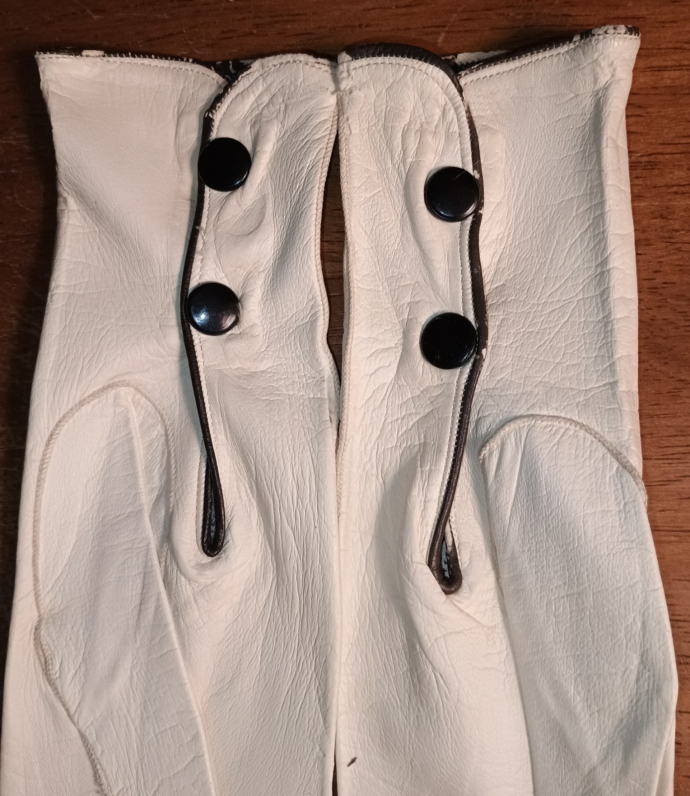 как выглядит Vintage Leather Off White Cream Gloves Made In France Metal Button Closure фото