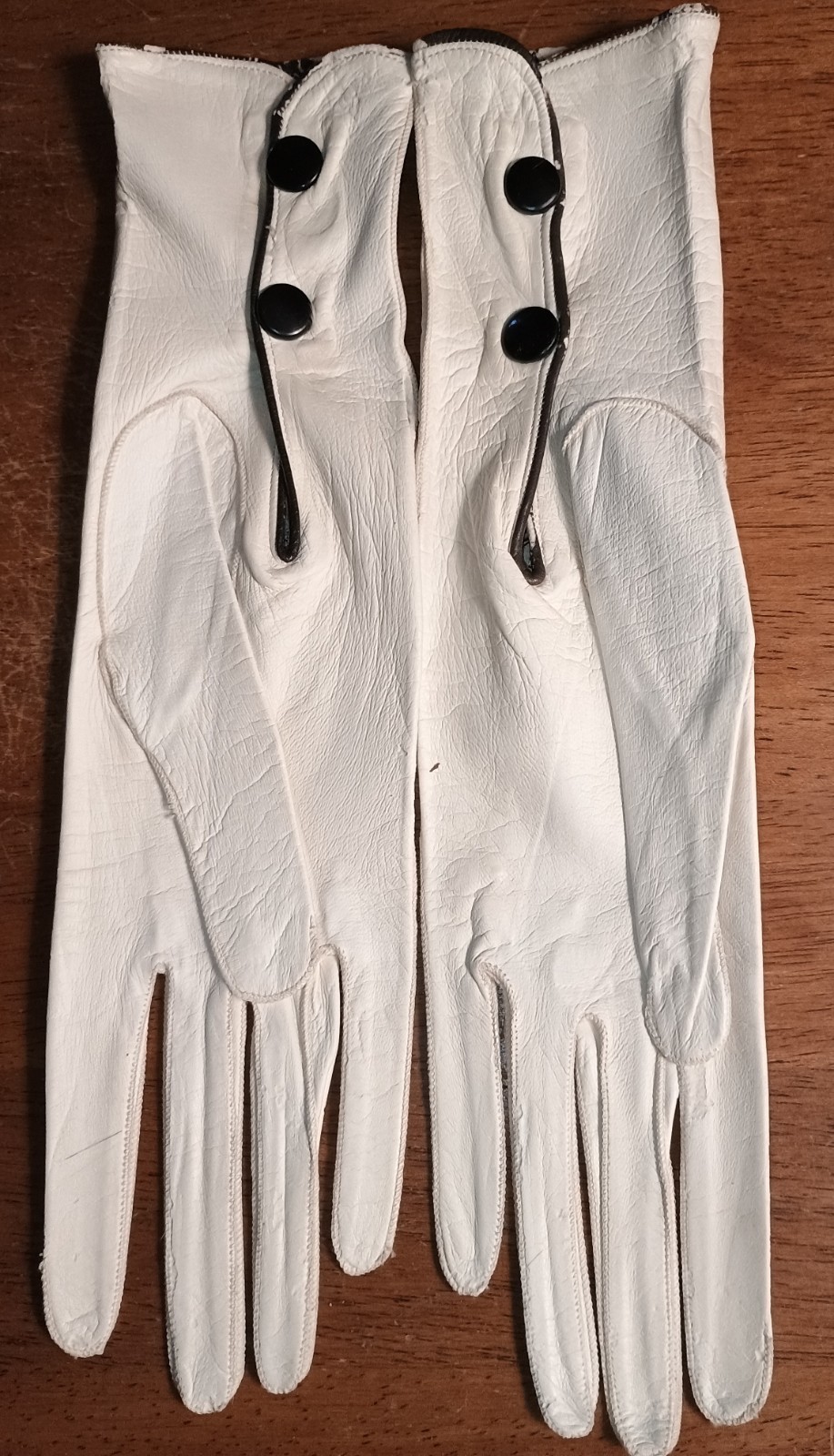 Vintage Leather Off White Cream Gloves Made In France Metal Button Closure