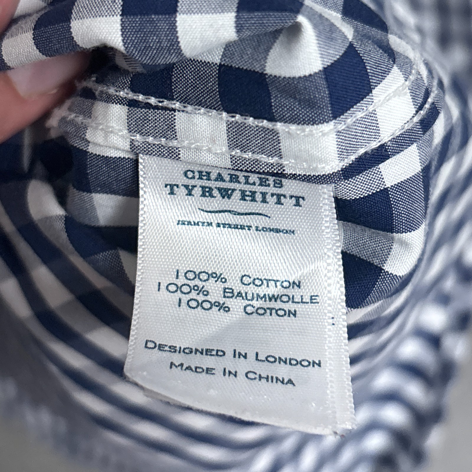 как выглядит Charles Tyrwhitt Shirt M Slim Fit Non Iron Navy Blue Gingham Plaid Button Down фото