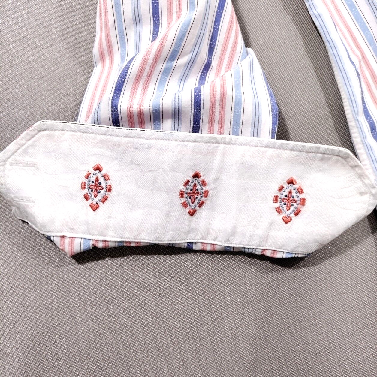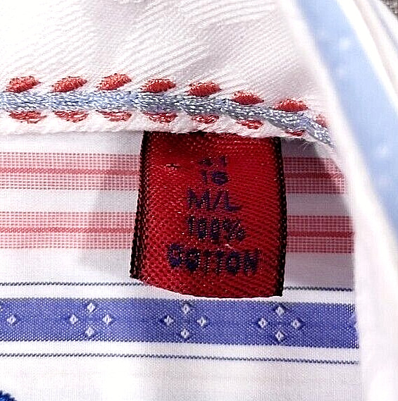 Robert Graham Flip Cuff Striped Shirt Men's Size 16 Embroidered 100 Cotton