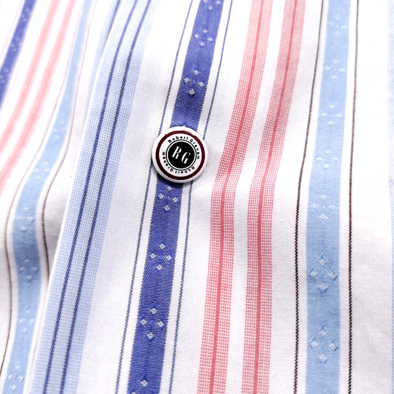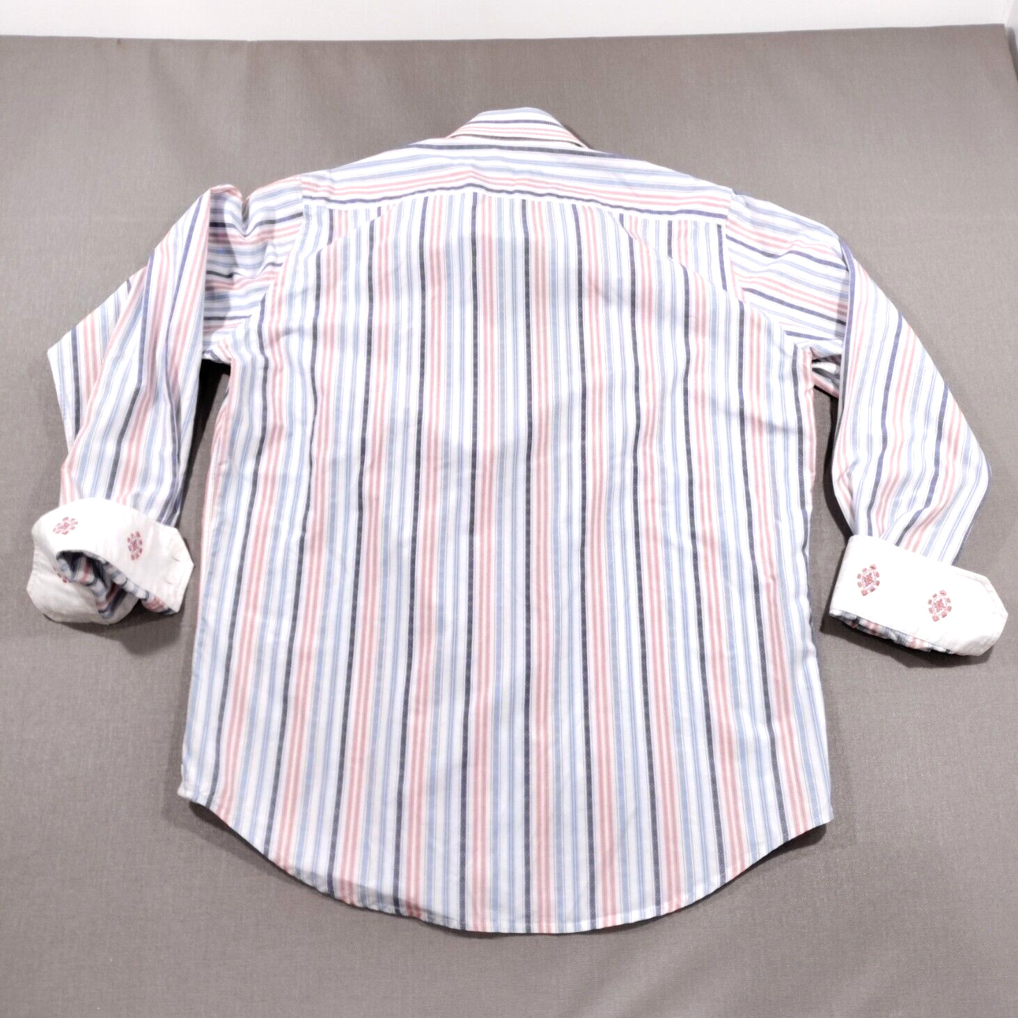 как выглядит Robert Graham Flip Cuff Striped Shirt Mens Size 16 Embroidered 100 Cotton фото