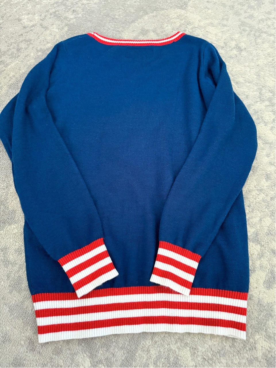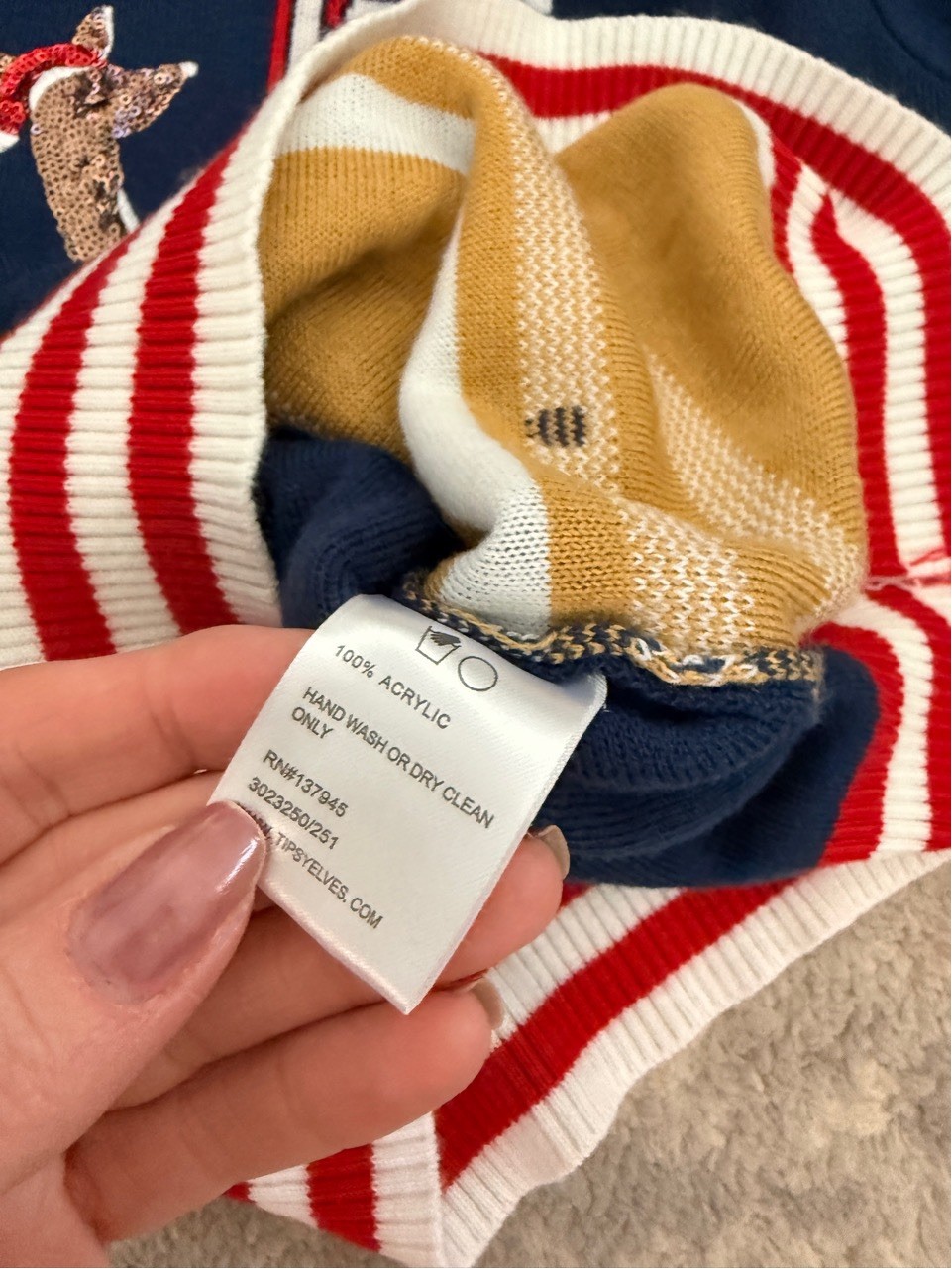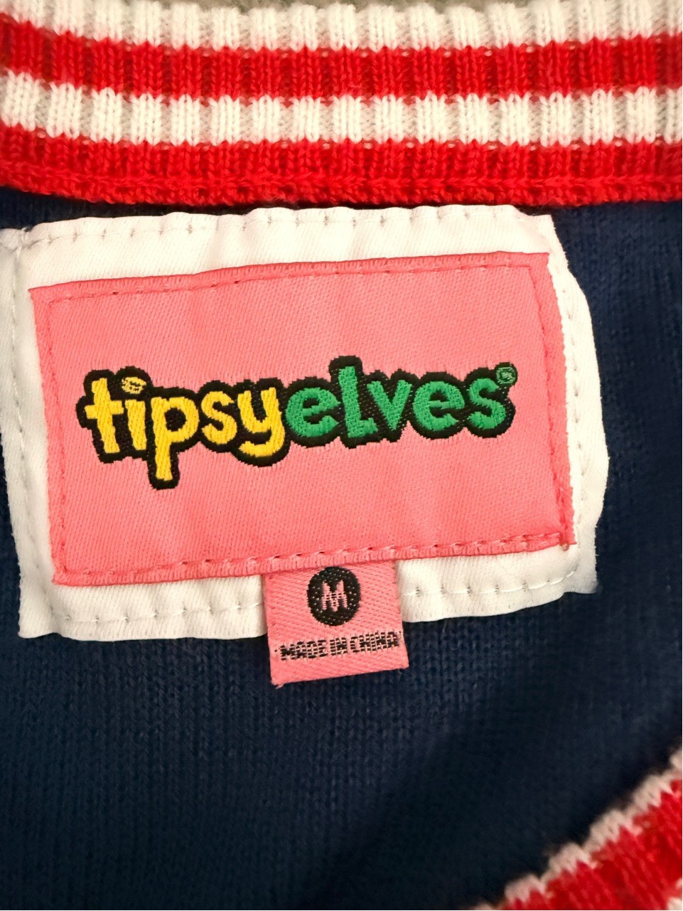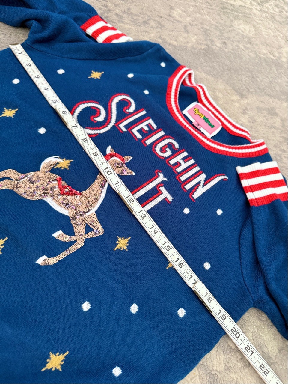 как выглядит Tipsy Elves Sleighin It Ugly Christmas Sweater Sequin Reindeer Navy Womens M фото