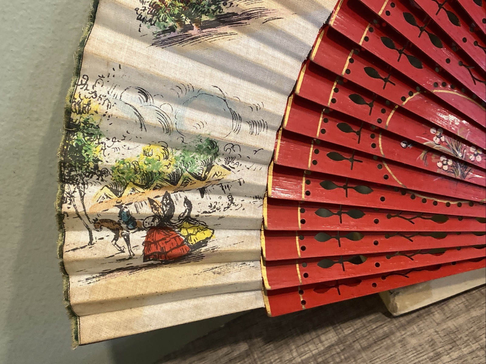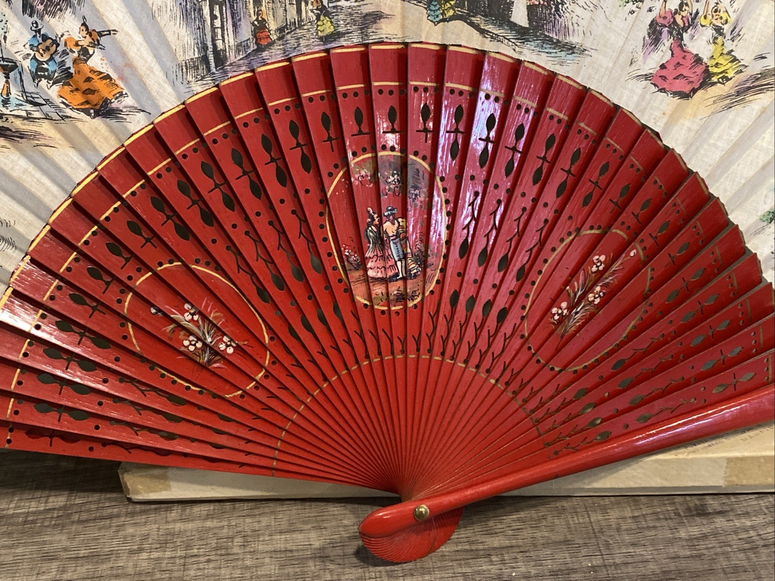 Vintage Casa de Diego Madrid Spanish Paper Wood Folding Fan w/Box