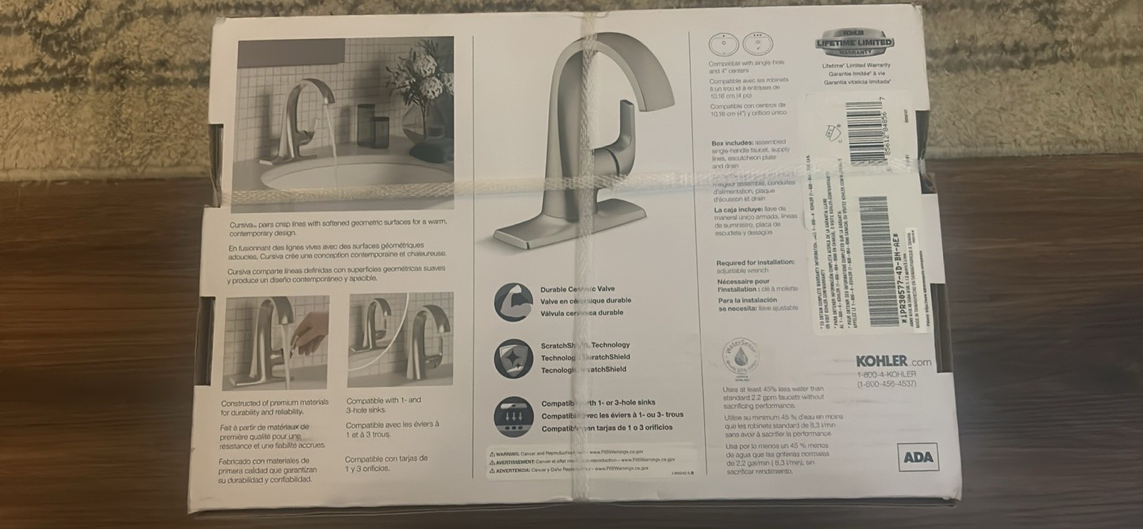 Brand New Kohler Cursiva Single Handle Bathroom Faucet Vibrant Brushed Nickel